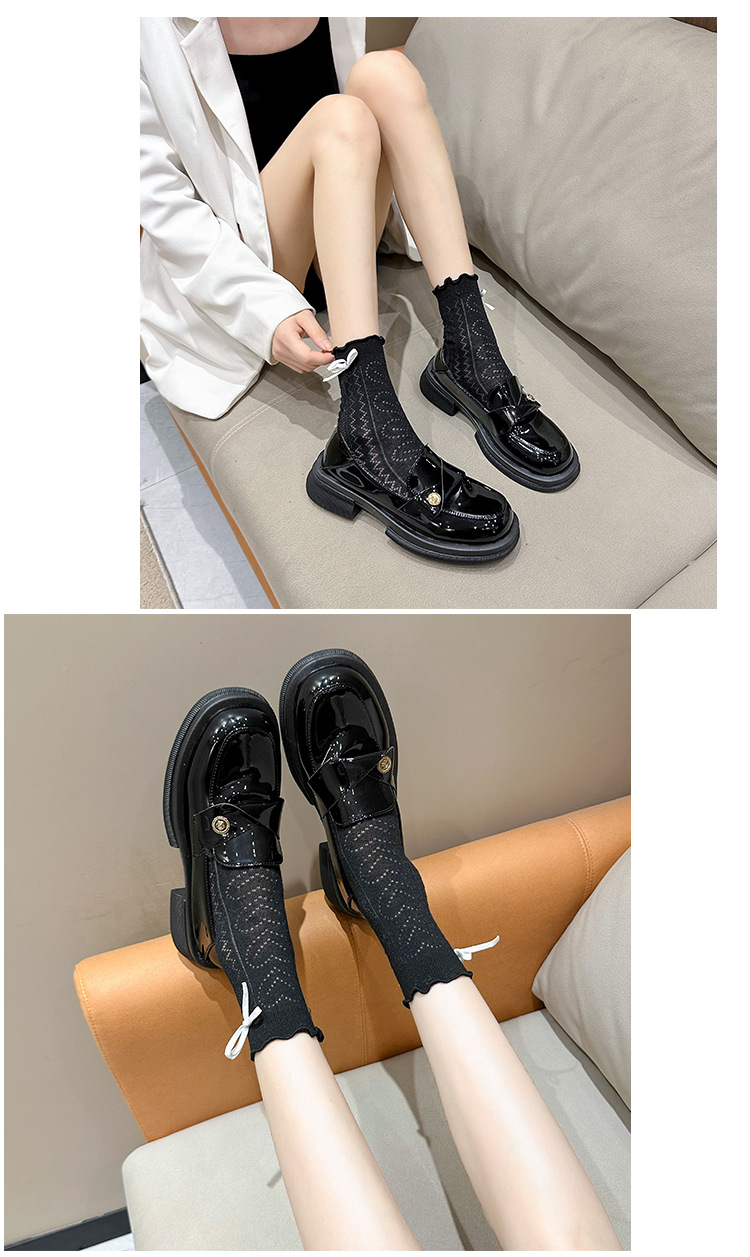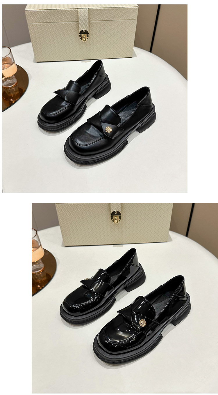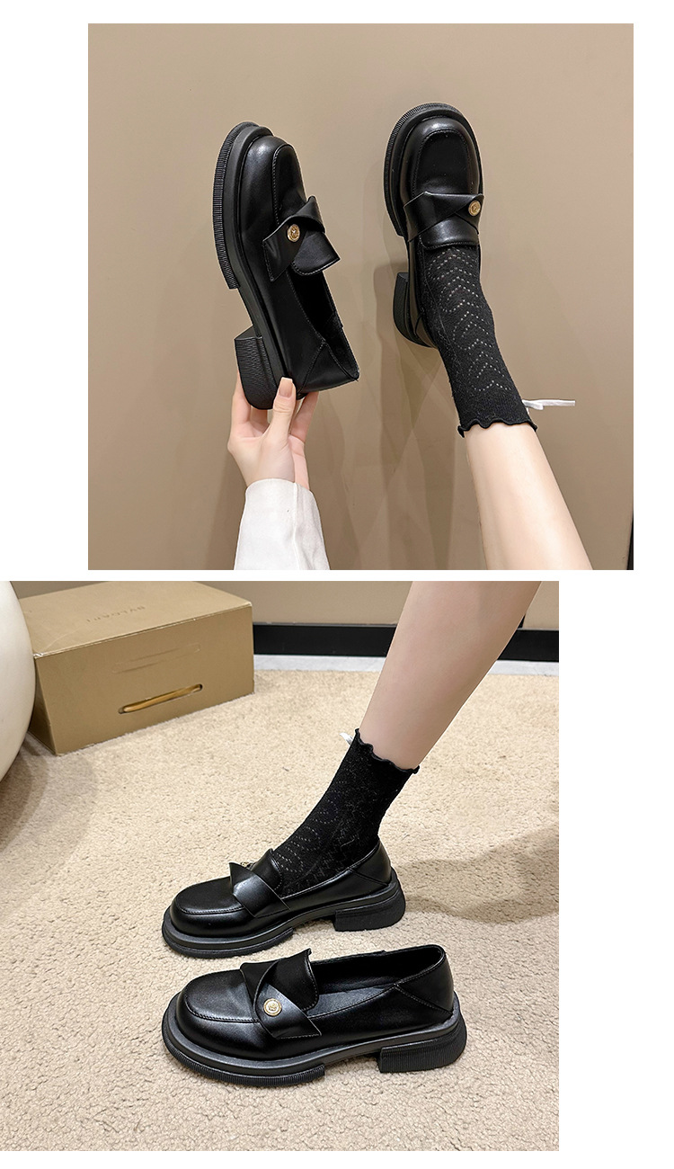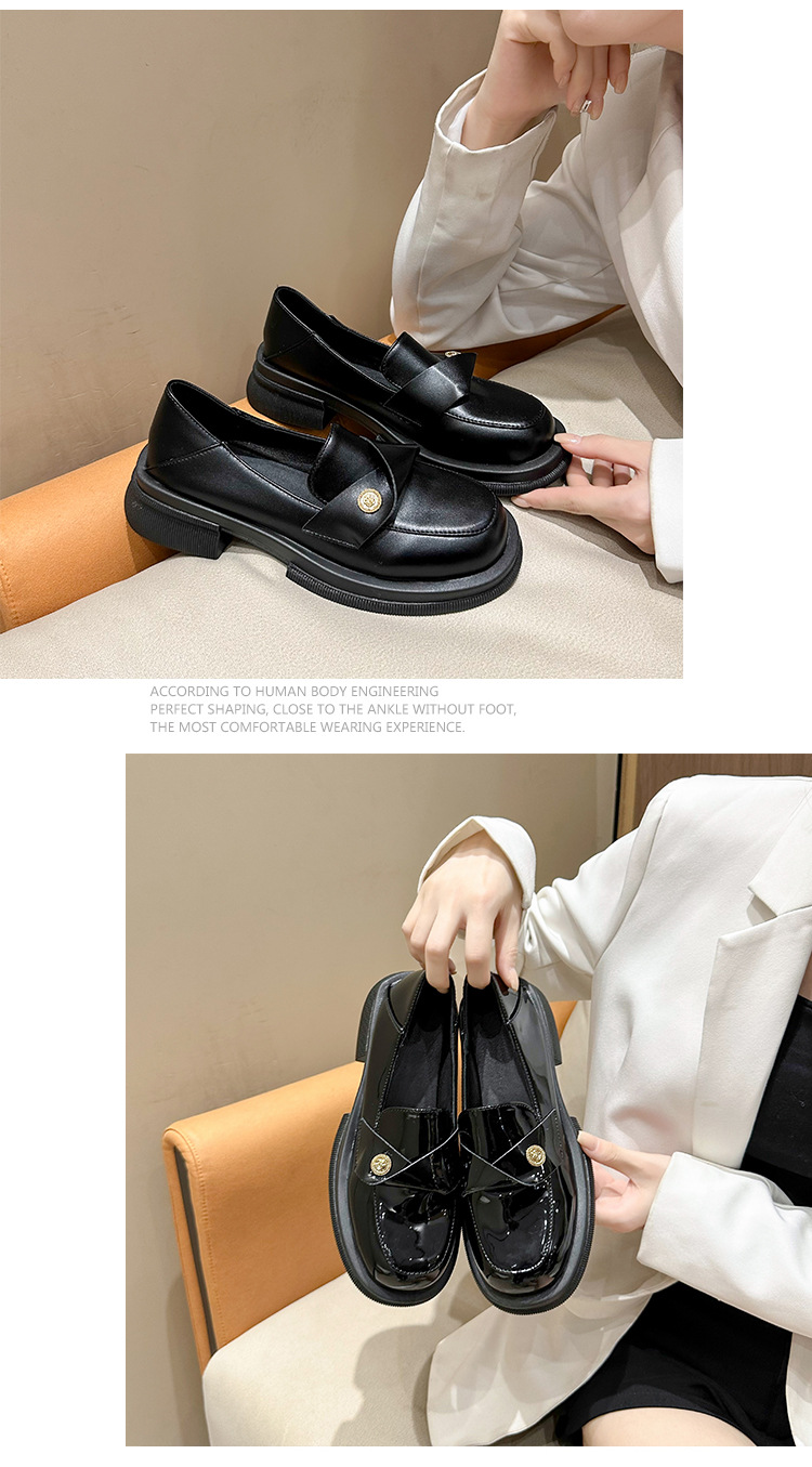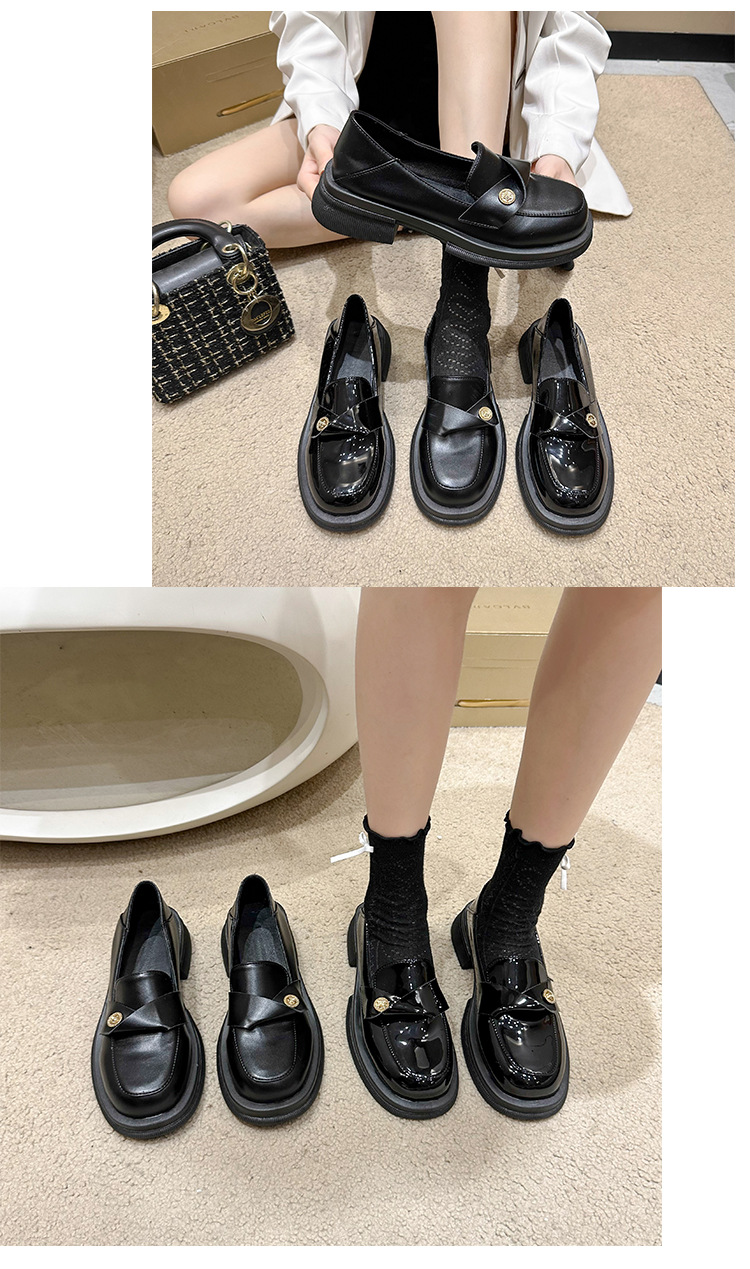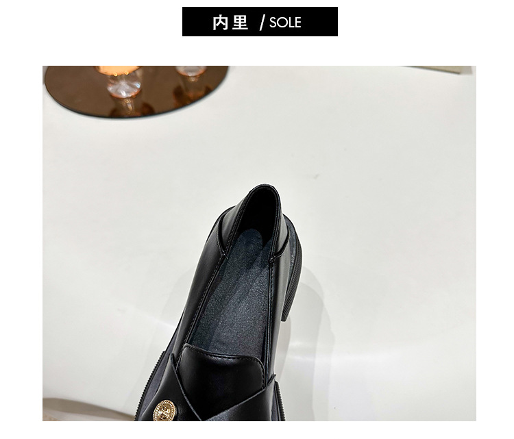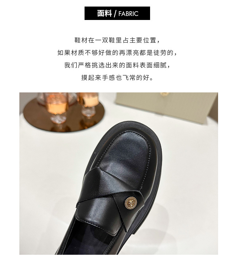 X-32117# 厚底高级感英伦风百搭一脚蹬小皮鞋女秋冬新款中跟复古乐福鞋 鞋子批發女鞋批發鞋子靴子貨源