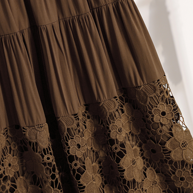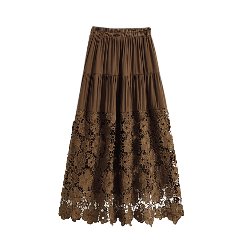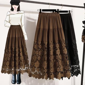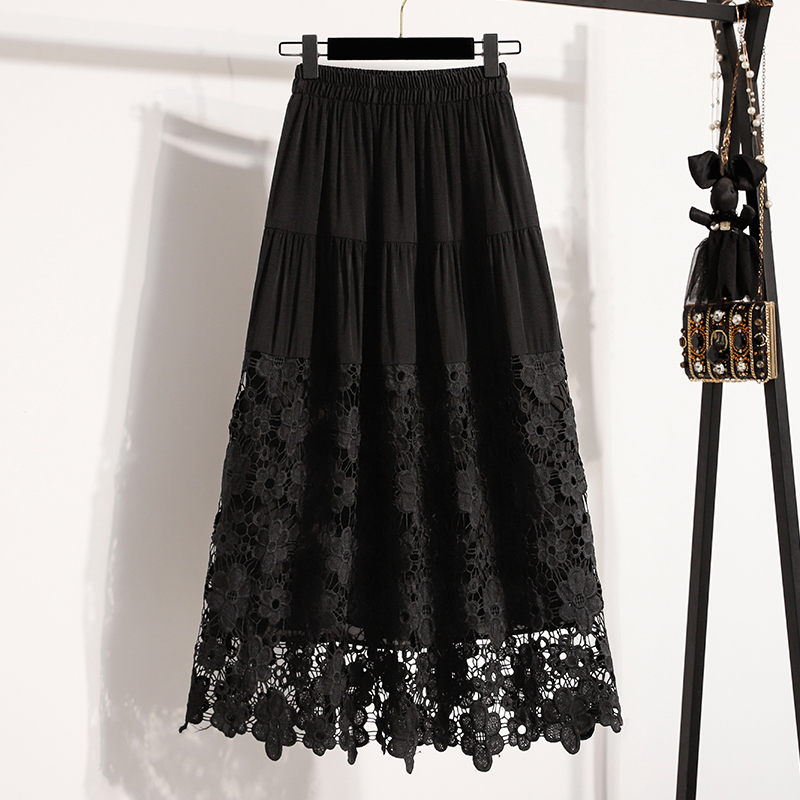 FA41560# 大码秋季新款蕾丝镂空拼接气质中长款A子裙 服裝批發女裝批發服飾貨源