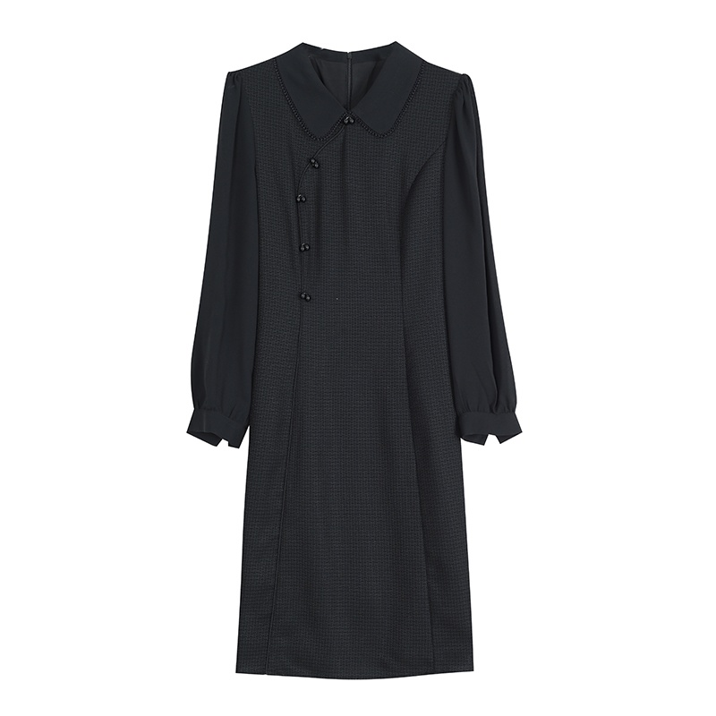 FA41617# 娃娃领黑色连衣裙女秋装新款女装长袖收腰显瘦赫本小黑裙子 服裝批發女裝批發服飾貨源