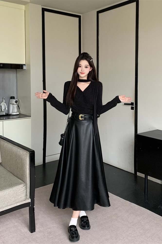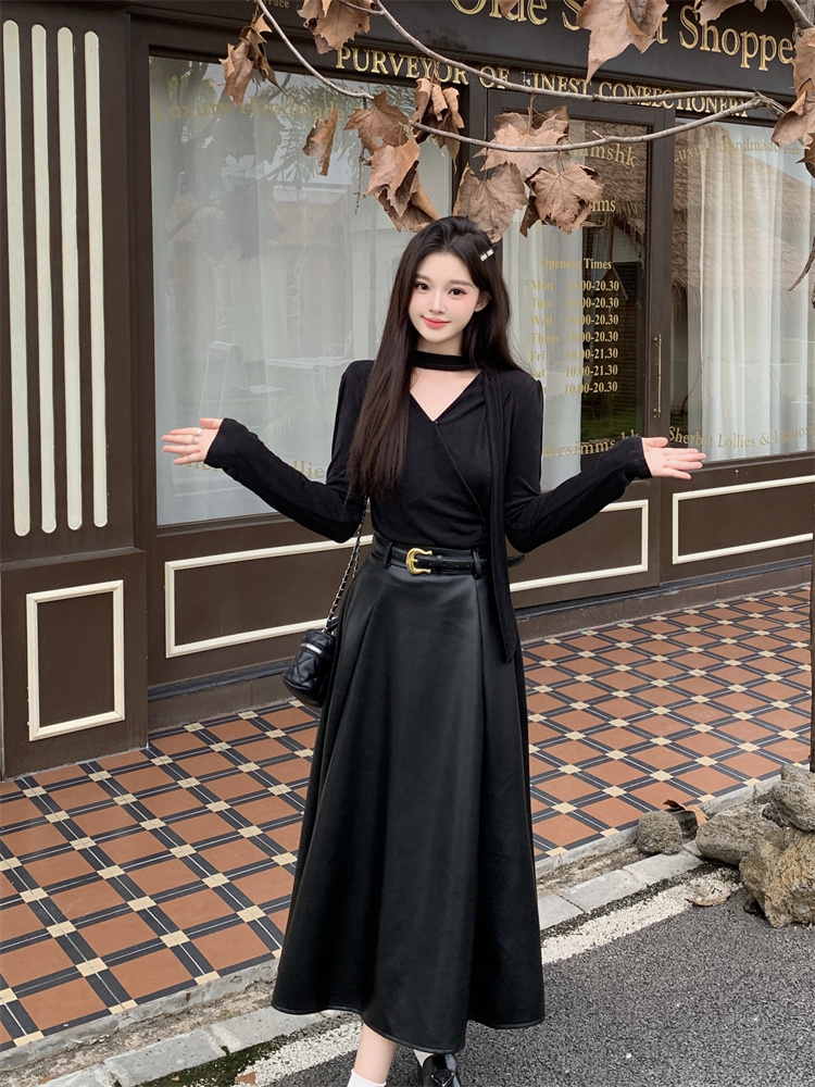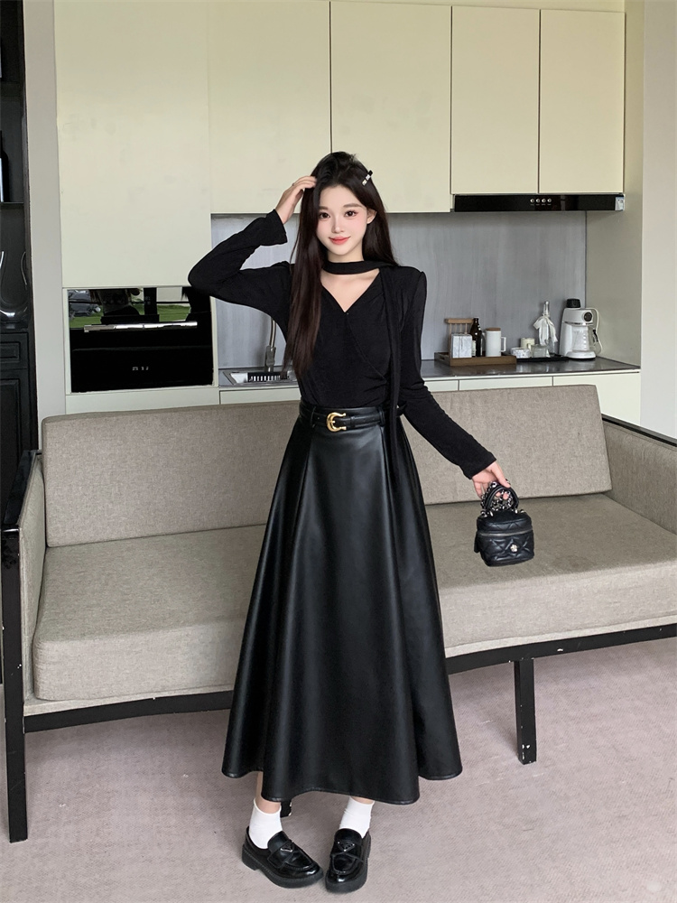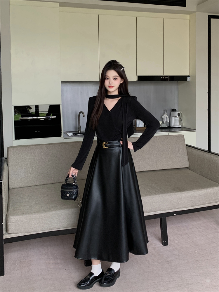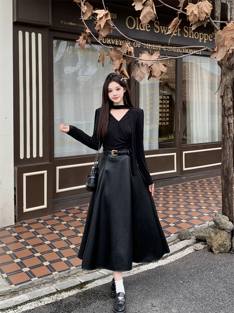 FA41711# 25初秋新休闲气质收腰百搭上衣+半裙 服裝批發女裝批發服飾貨源