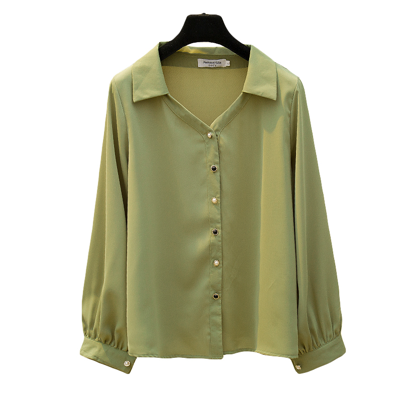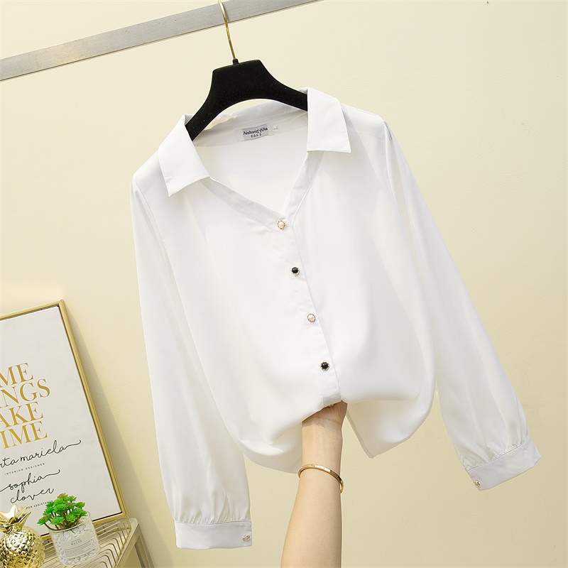 FA41744# 大码女装秋季胖妹妹超仙韩版宽松显瘦V领百搭长袖衬衫 服裝批發女裝批發服飾貨源