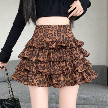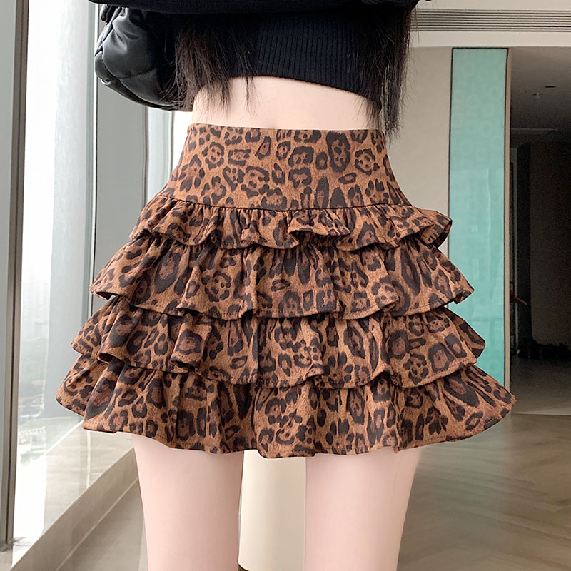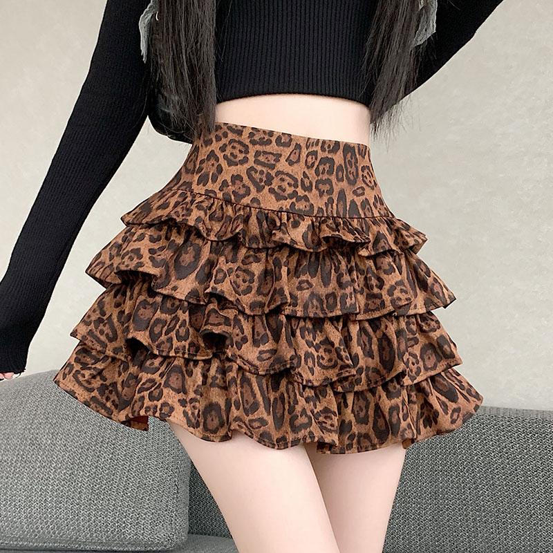 FA41755# 美式秋冬设计感辣妹显瘦豹纹高腰a字蓬蓬蛋糕裙半身裙女 服裝批發女裝批發服飾貨源