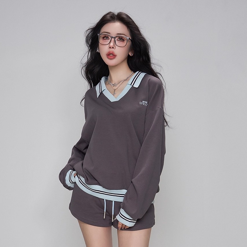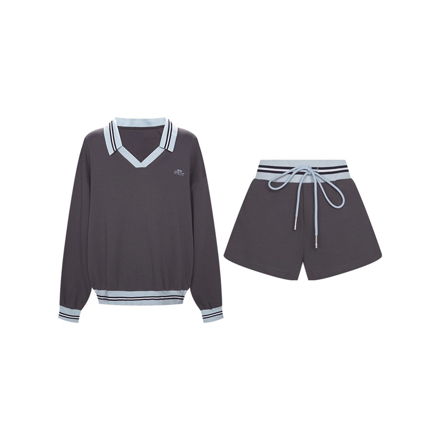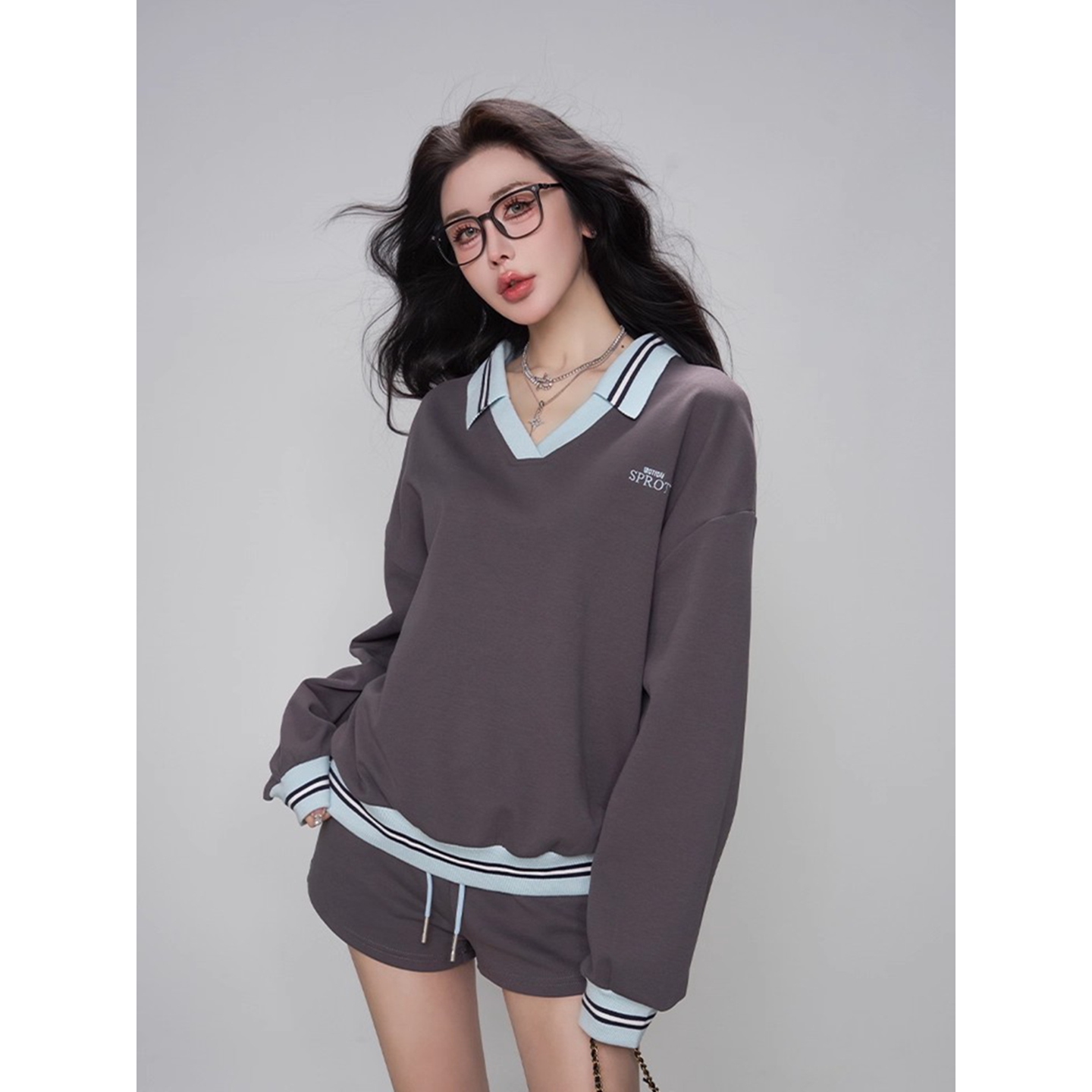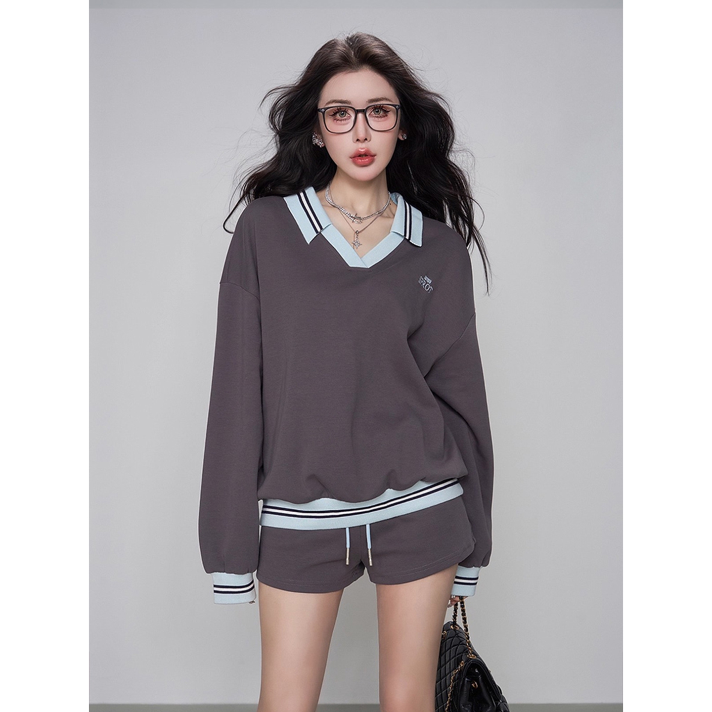 FA41805# 休闲套装女秋季运动翻领长袖卫衣+抽绳短裤两件套 服裝批發女裝批發服飾貨源
