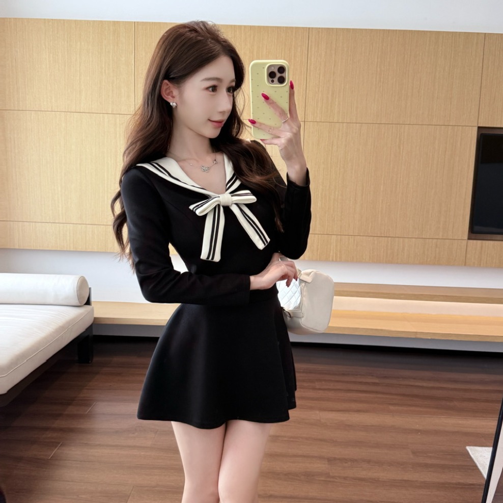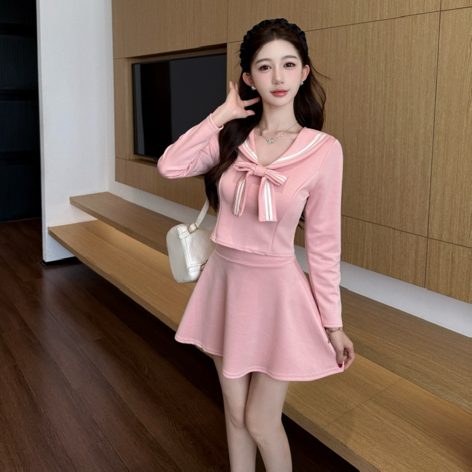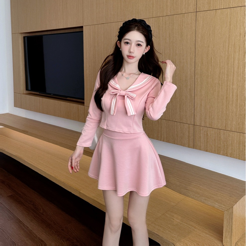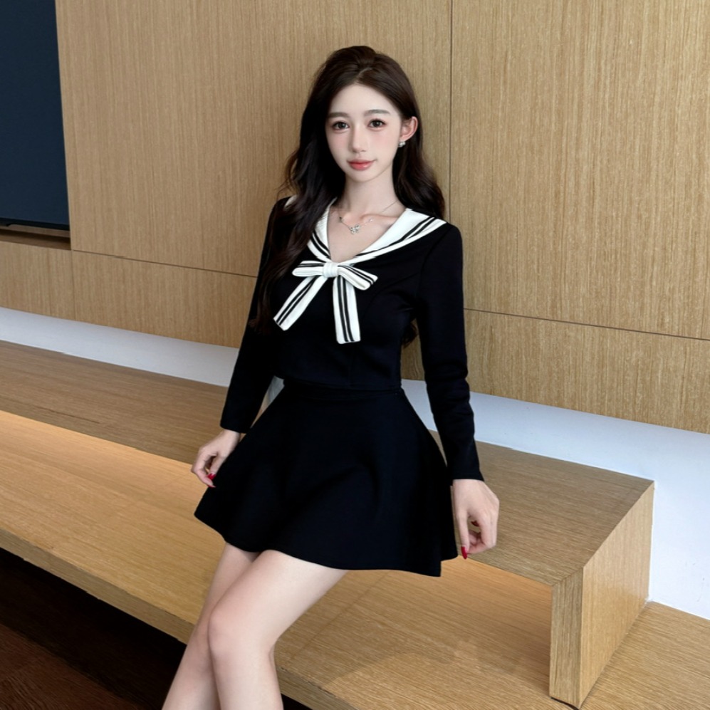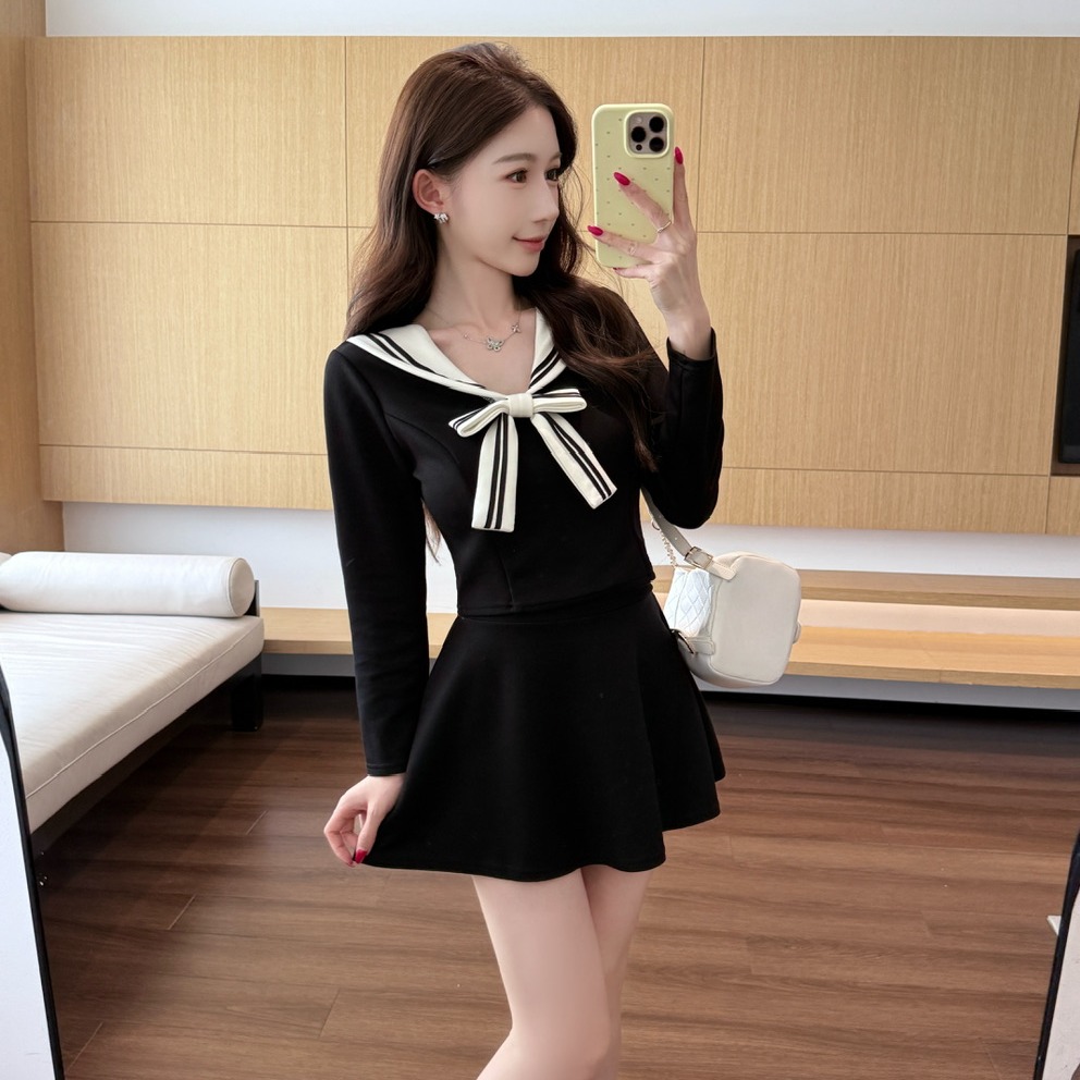 FA41941# 秋装新款套装学院风海军领上衣+A字短裙两件套 服裝批發女裝批發服飾貨源