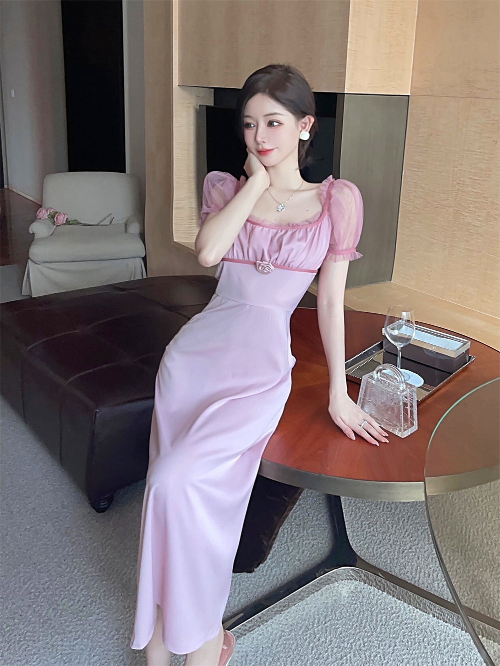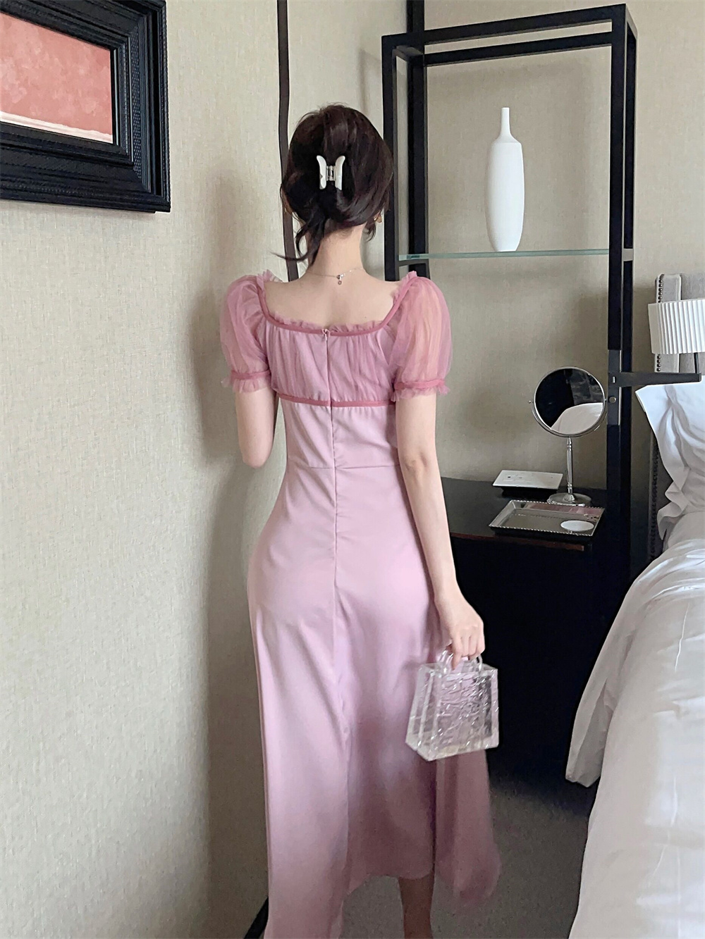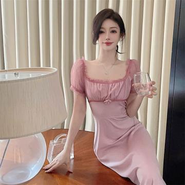 面料:网纱+雪纺 颜色:粉色