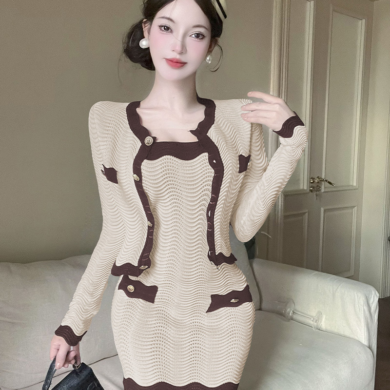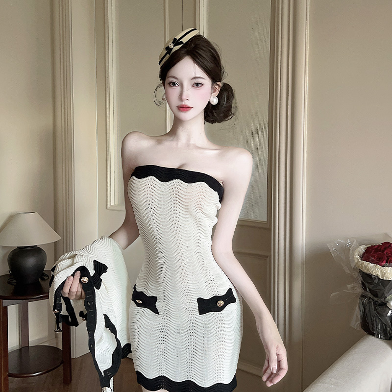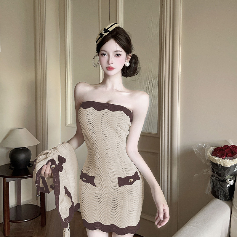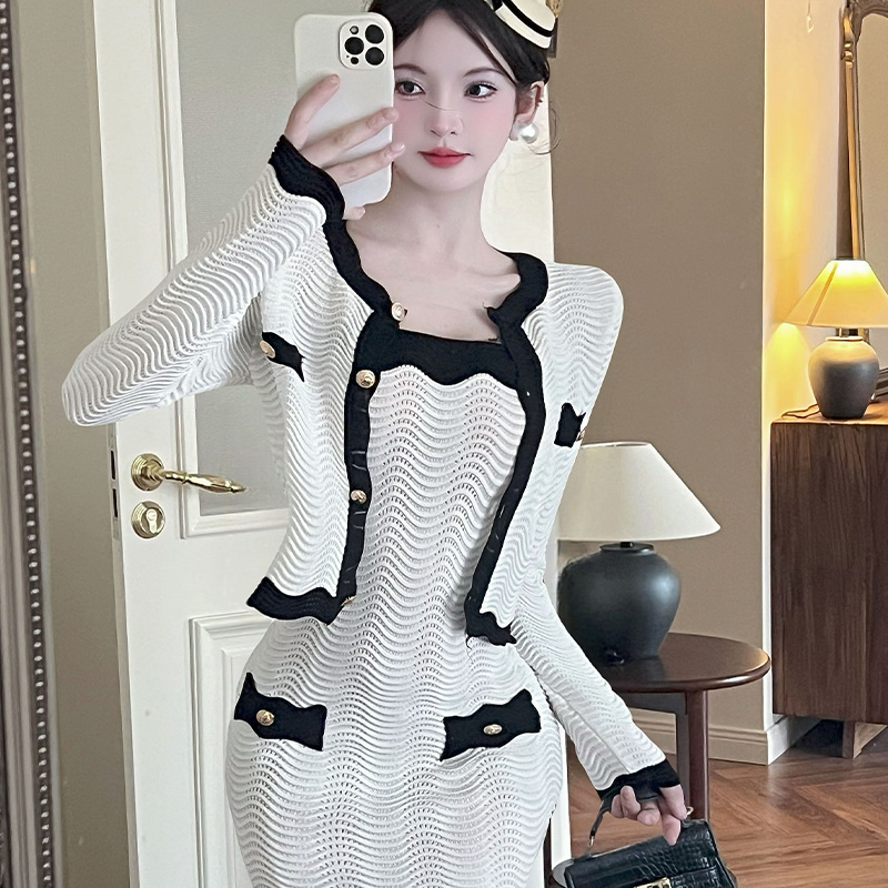 FA42006# 早秋小香风优雅气质通勤针织抹胸连衣裙长袖外套两件套 服裝批發女裝批發服飾貨源