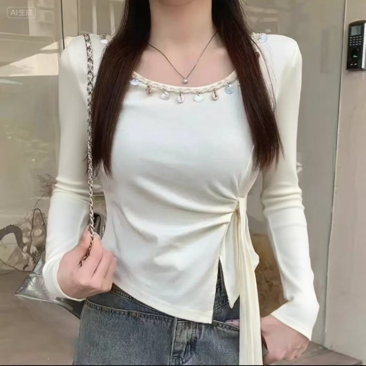 FA42017# 时尚打底衫女冬季新款绑带收腰修身显瘦大码洋气长袖女 服裝批發女裝批發服飾貨源