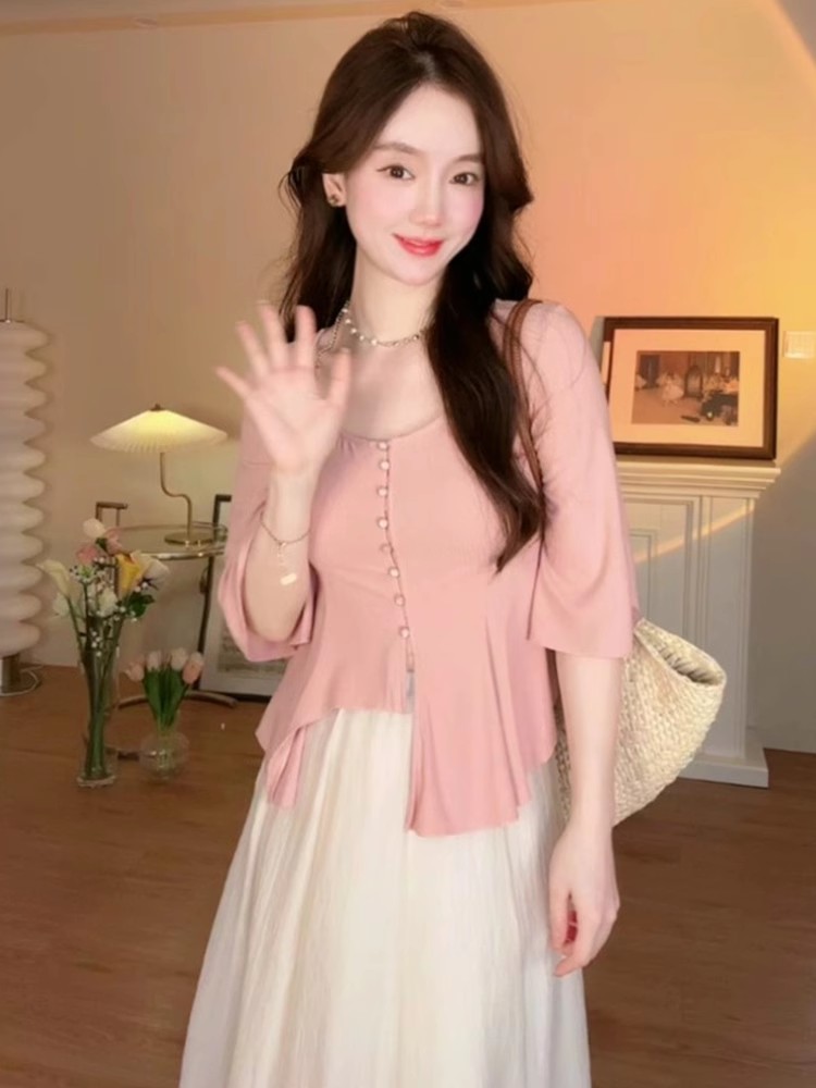 FA42024# 新中式复古禅意小衫女春秋季掐腰设计感温柔显瘦上衣女 服裝批發女裝批發服飾貨源