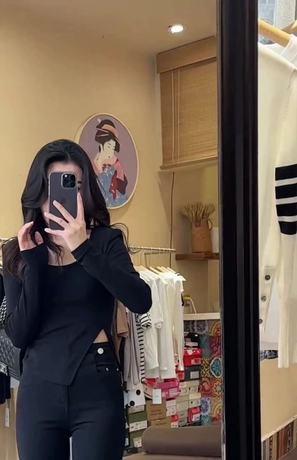 FA42025# 不规则开叉打底衫女内搭时尚洋气玫粉色新款秋季修身上衣 服裝批發女裝批發服飾貨源