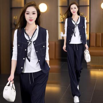 FA42085# 休闲时尚套装女减龄显瘦秋新款大码女装三件套