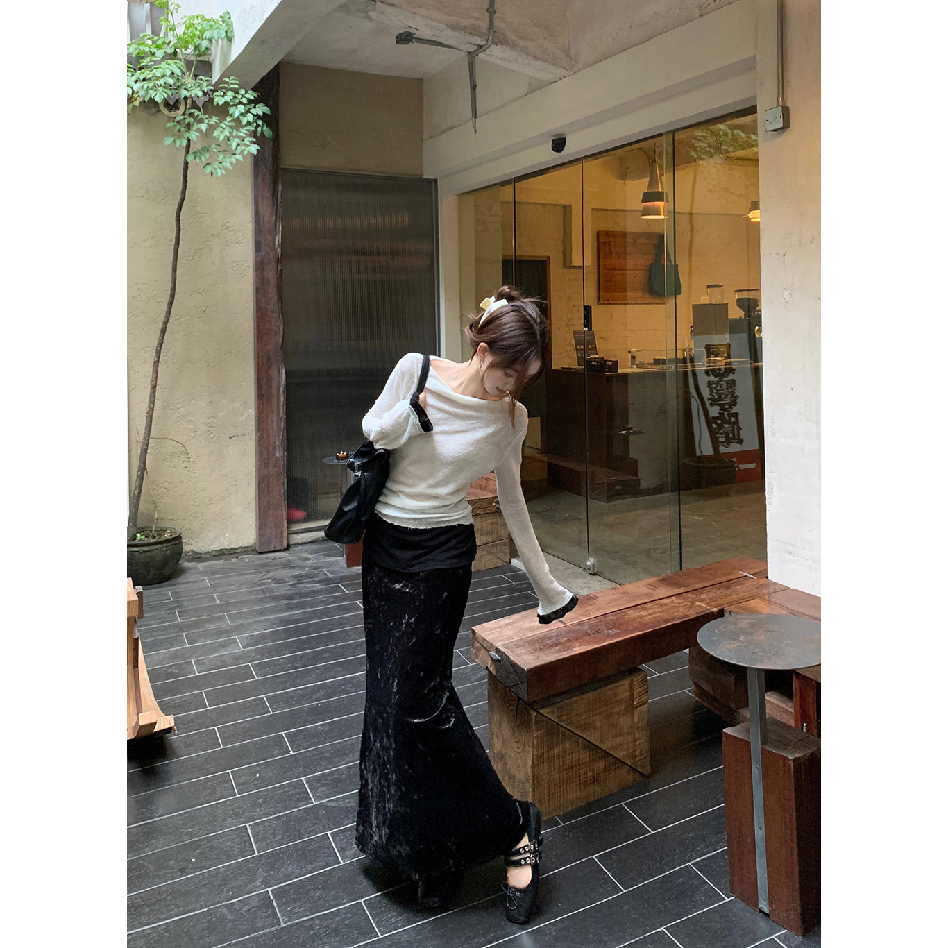 FA42098# 初秋穿搭一整套大码胖mm假两件上衣半身裙盐系减龄独特漂亮套装女