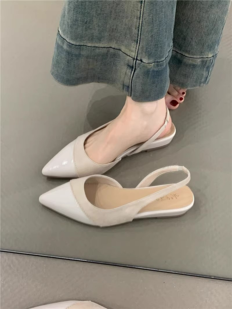 X-32773# 法式温柔仙女坡跟单鞋气质优雅皮面尖头浅口后空通勤凉鞋 鞋子批发女鞋批发