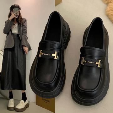 X-32776# 乐福鞋女批发新款春秋厚底复古一脚蹬小皮鞋英伦风黑色制服jk单鞋 鞋子批发女鞋批发