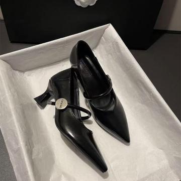 X-32793# 新款尖头粗跟低跟单鞋女韩版一字扣软皮通勤玛丽珍鞋 鞋子批发女鞋批发
