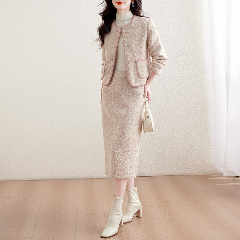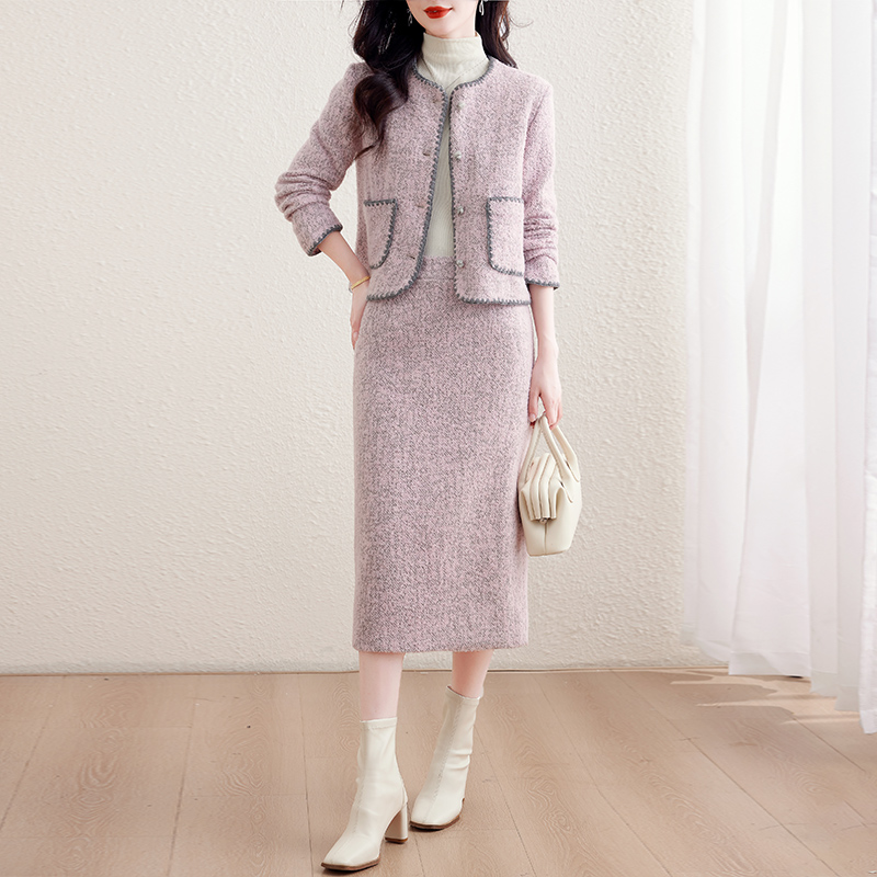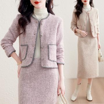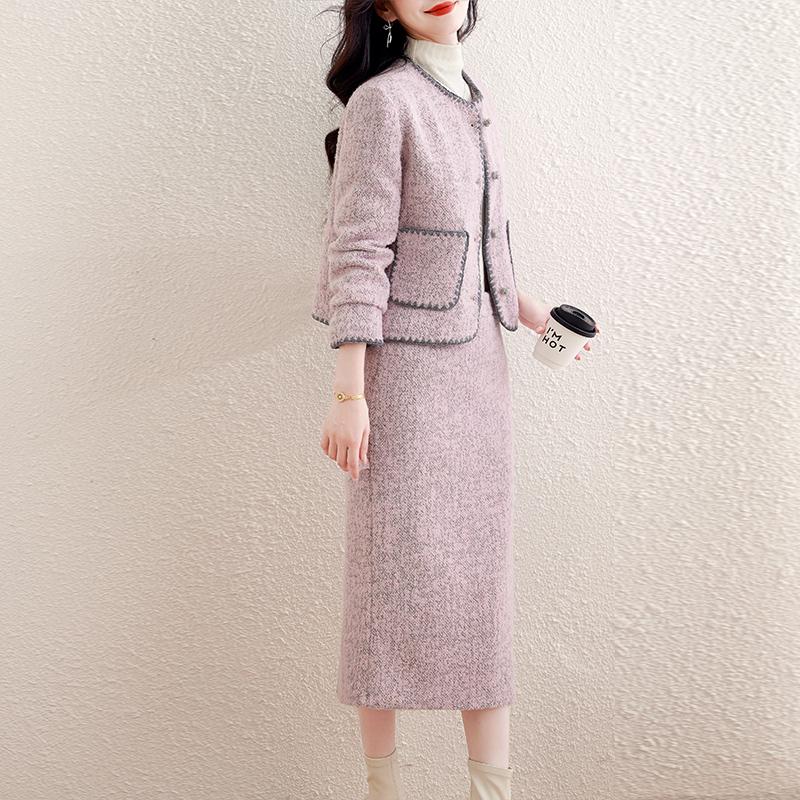 FA42486# 小香风套装女冬季新款高端精致粗花呢长裙加厚显瘦两件套 服裝批發女裝批發服飾貨源