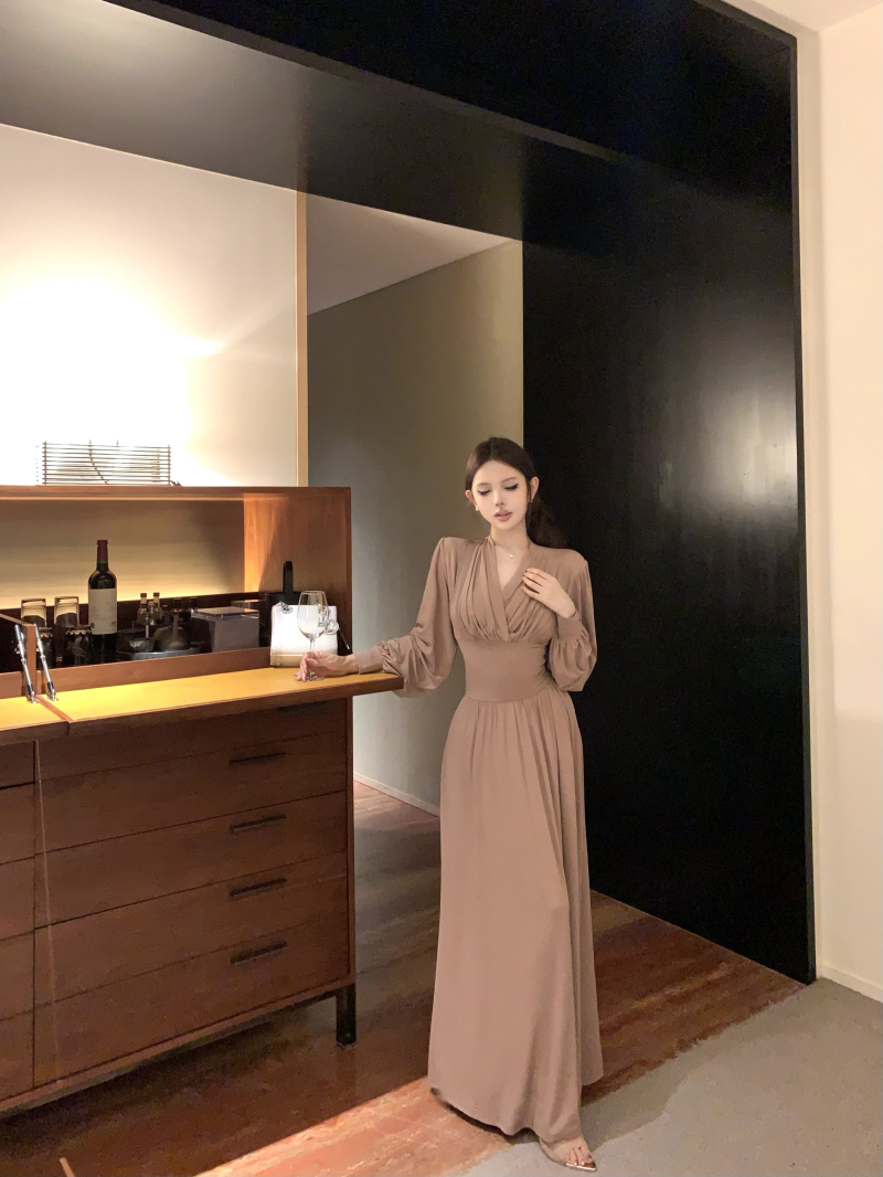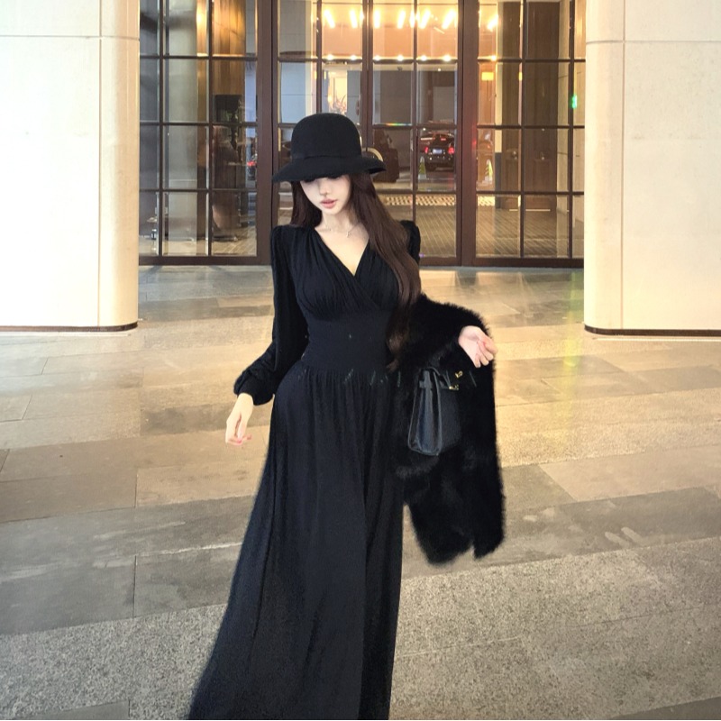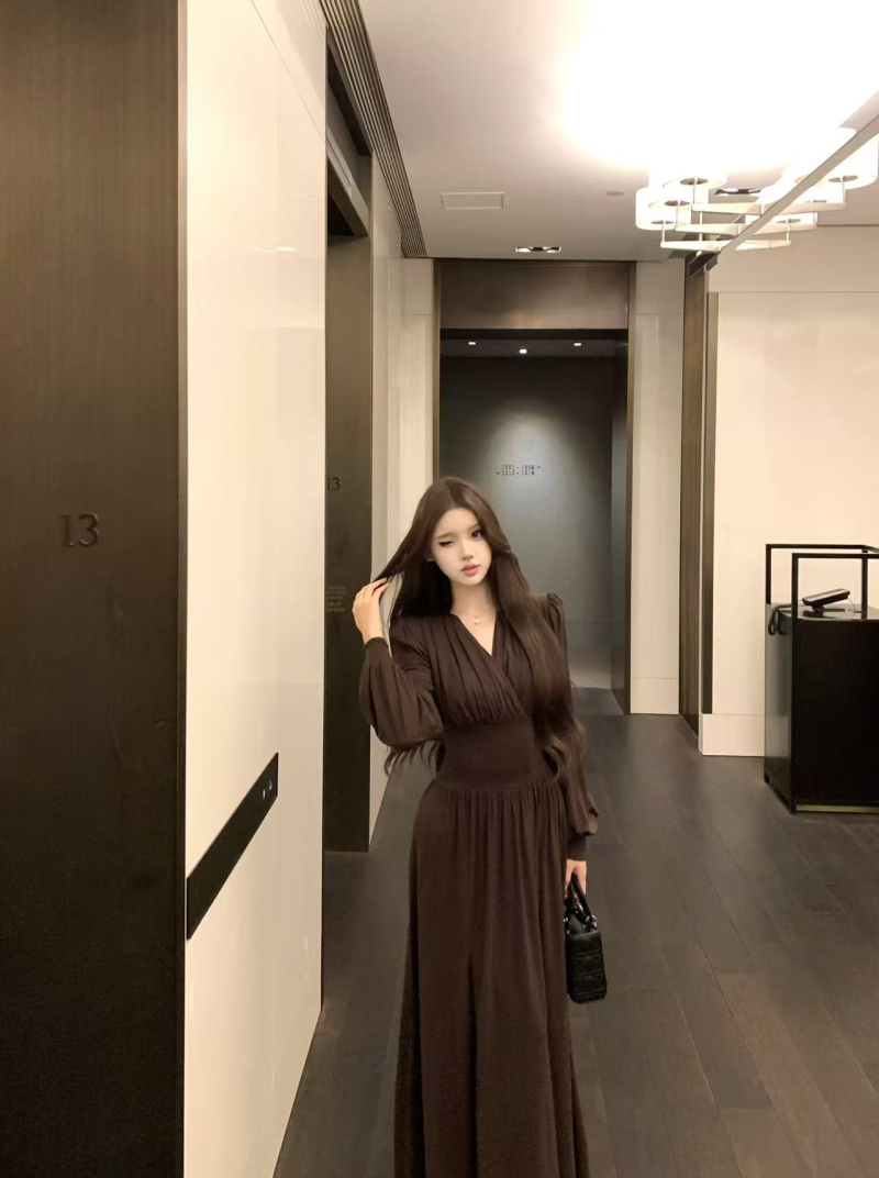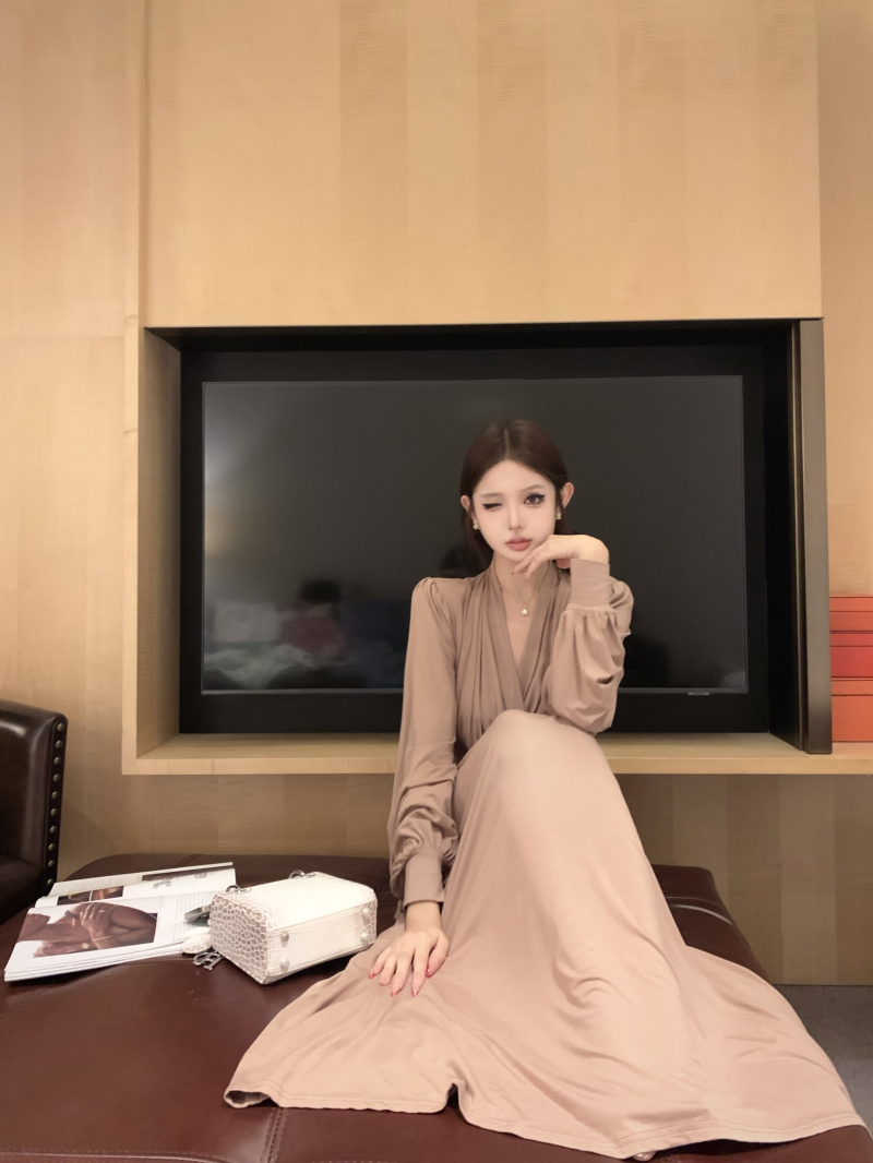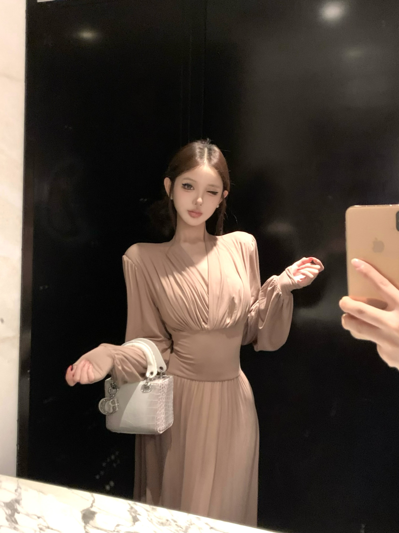 Home > 夜店裙、长袖连衣裙 > FA42558# 法式高级感气质V领收腰显瘦长袖连衣裙 服裝批發女裝批發服飾貨源