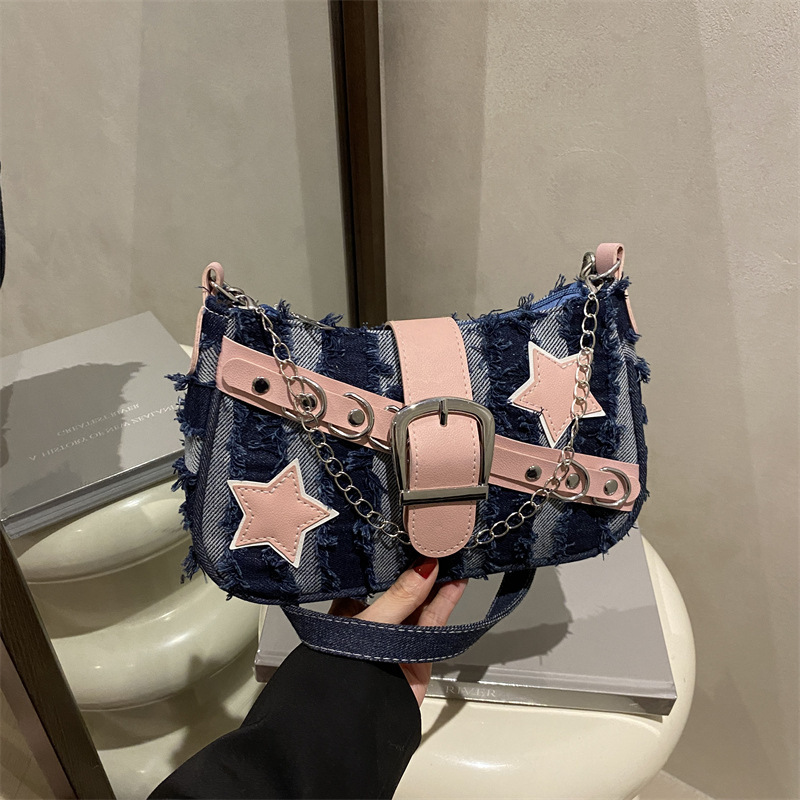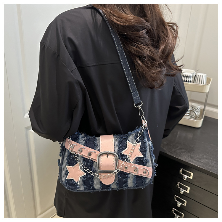 TJ2028# 2025新款潮小众设计潮流带星星法棍单肩包包辣妹链条腋下包女