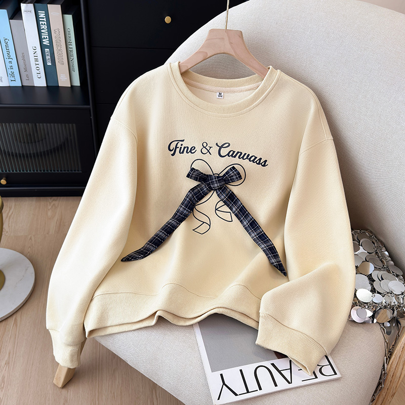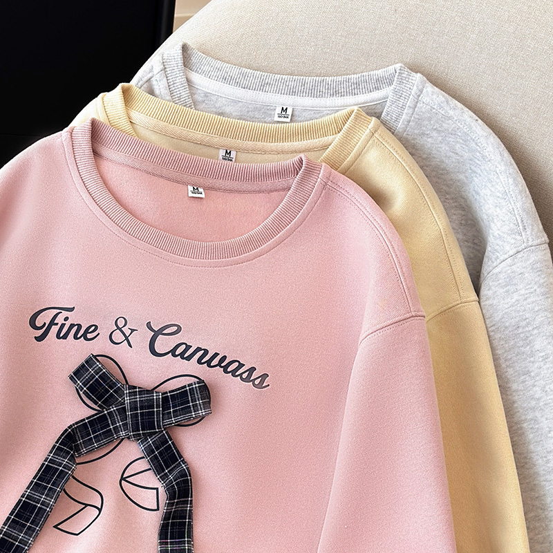 FA42731# 秋季新款时尚蝴蝶结装饰圆领卫衣宽松大气字母印花上衣女 服裝批發女裝批發服飾貨源