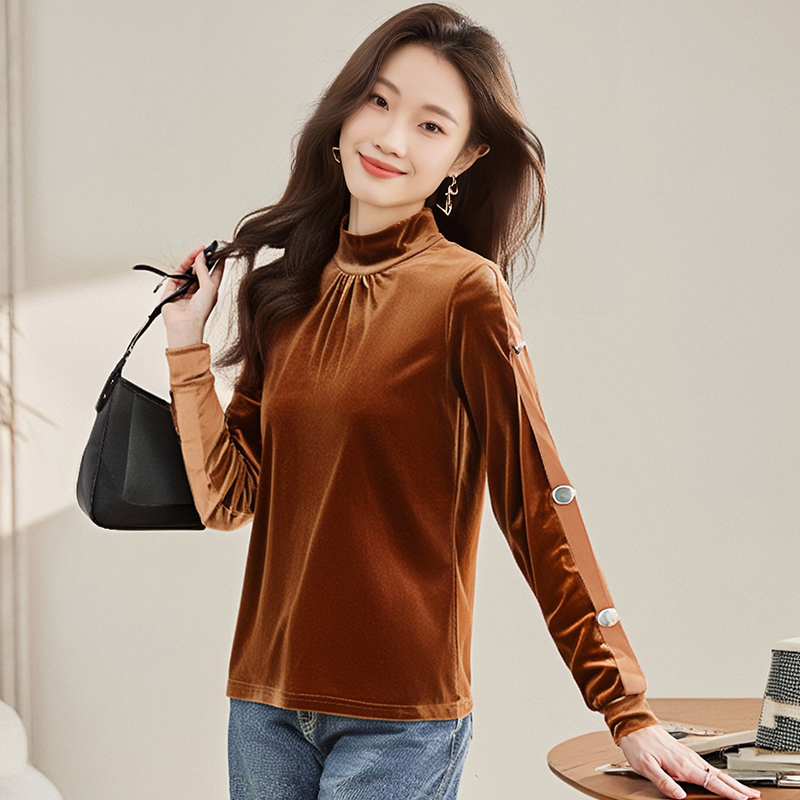 FA42745# 新款金丝绒设计感高领打底小衫洋气内搭T恤 服裝批發女裝批發服飾貨源