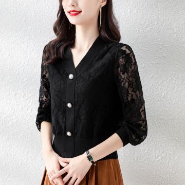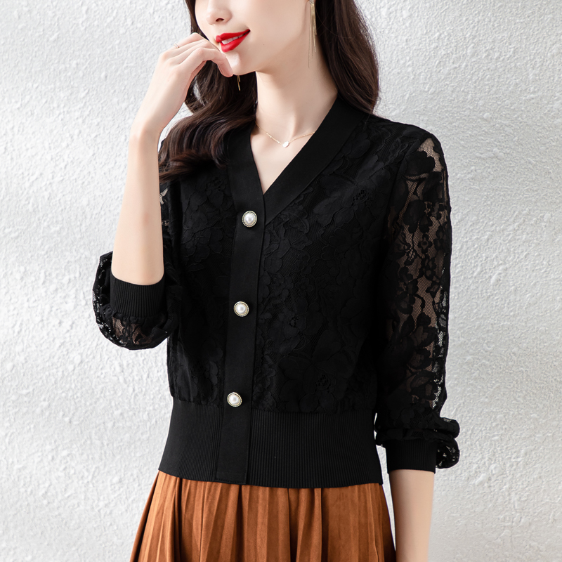 FA42747# 秋季新款V领蕾丝法式上衣设计感小众高级感气质小衫 服裝批發女裝批發服飾貨源