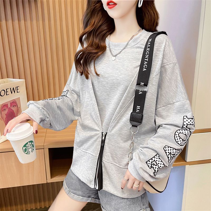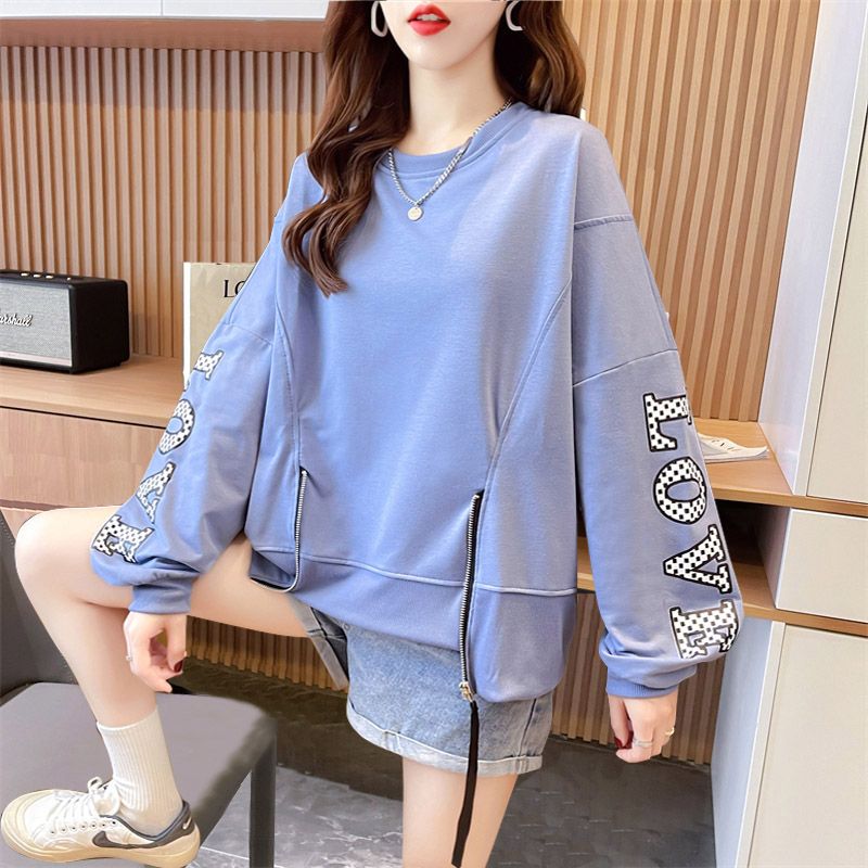 FA42770# 鱼鳞春秋季小众卫衣女拉链薄款蓝色oversize印花 服裝批發女裝批發服飾貨源
