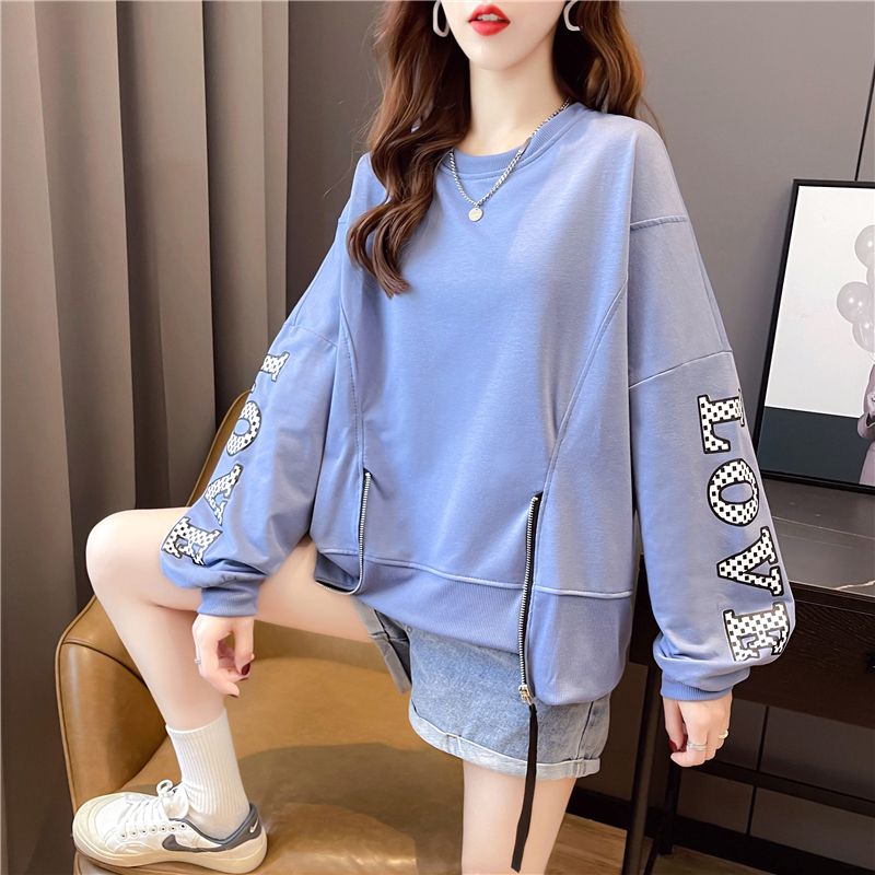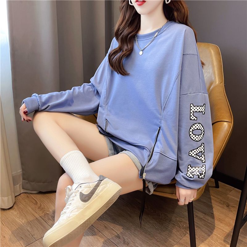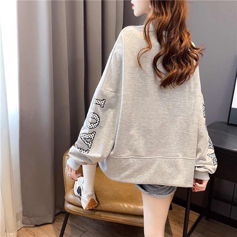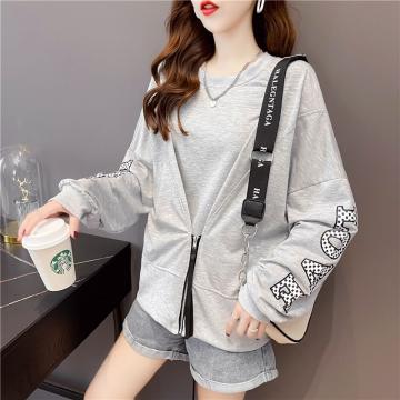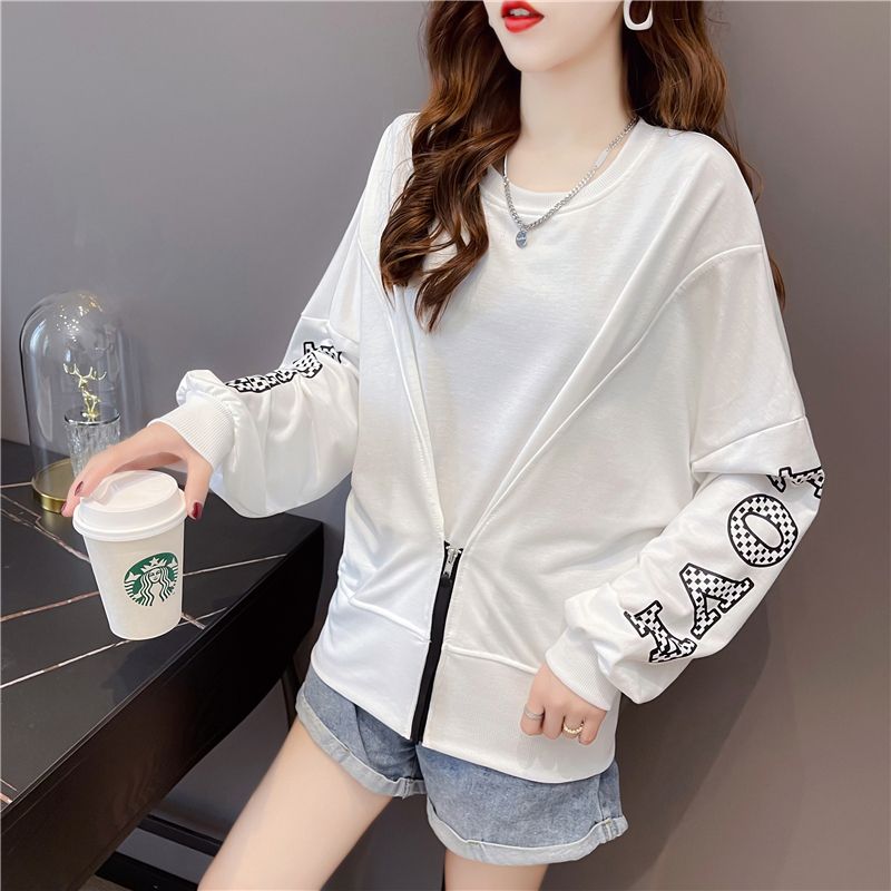 FA42771# 鱼鳞春秋季小众卫衣女拉链薄款灰白黑色oversize印花 服裝批發女裝批發服飾貨源