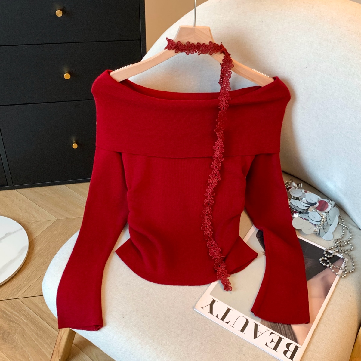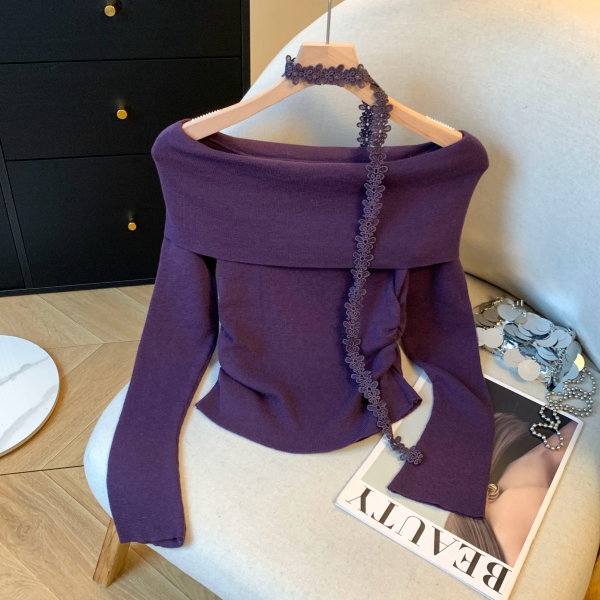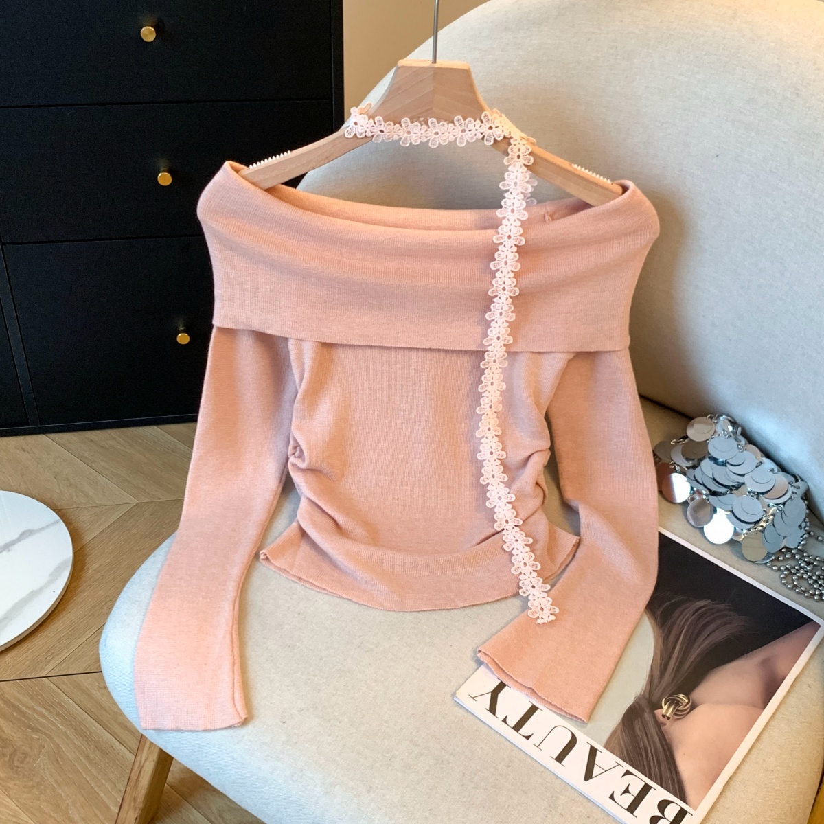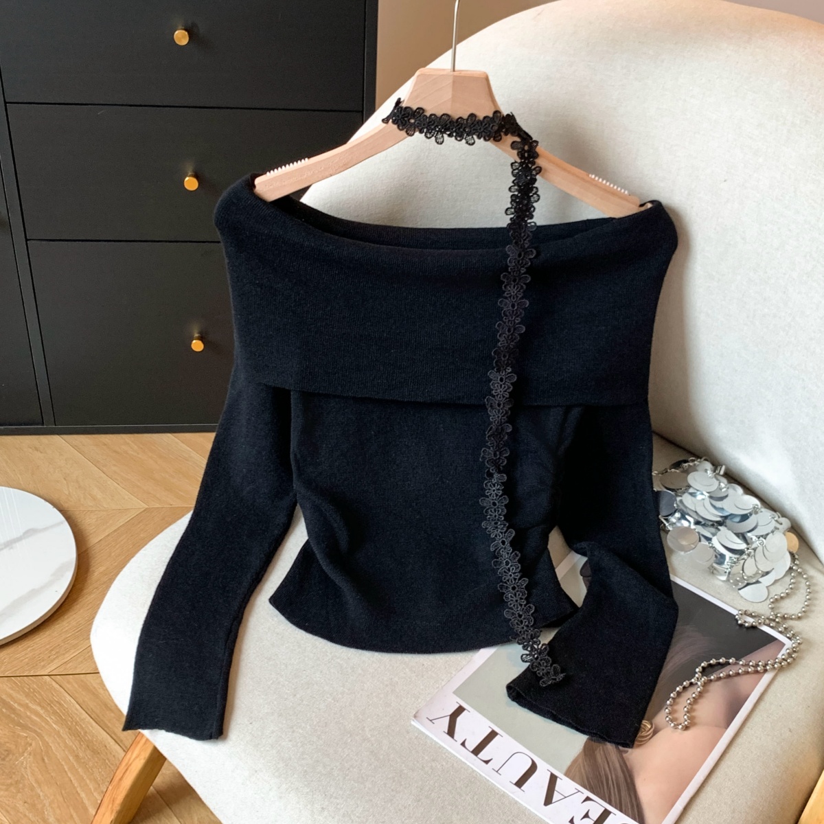 FA42776# 荡领长袖针织秋冬修身显瘦外穿慵懒风高级感设计感打底衫上衣 服裝批發女裝批發服飾貨源