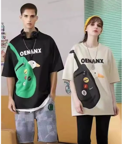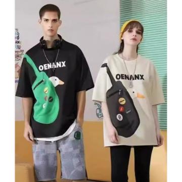 LN76309# 纯棉短袖T恤口袋印花嘻哈街头夏季上衣情侣潮牌3D印花短袖