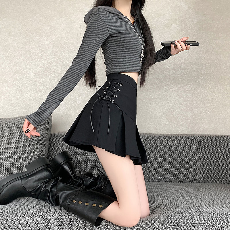 FA42857# 辣妹高级感复古低腰显瘦百褶裙防走光学姐A字裙半身裙短裙潮 服裝批發女裝批發服飾貨源