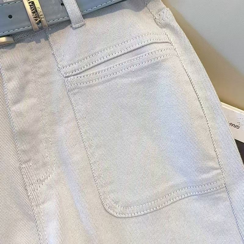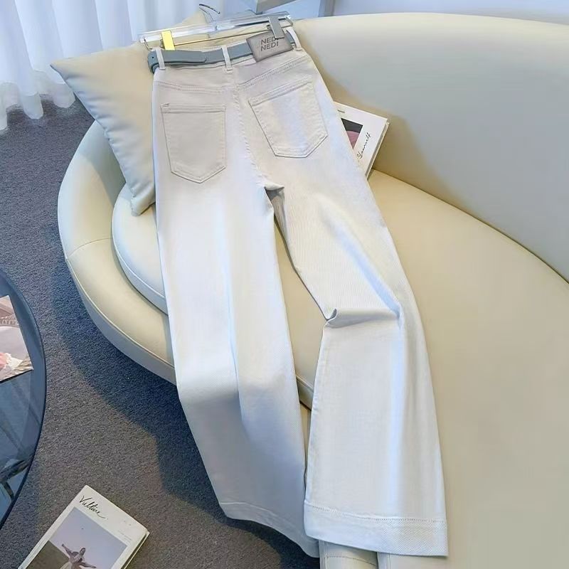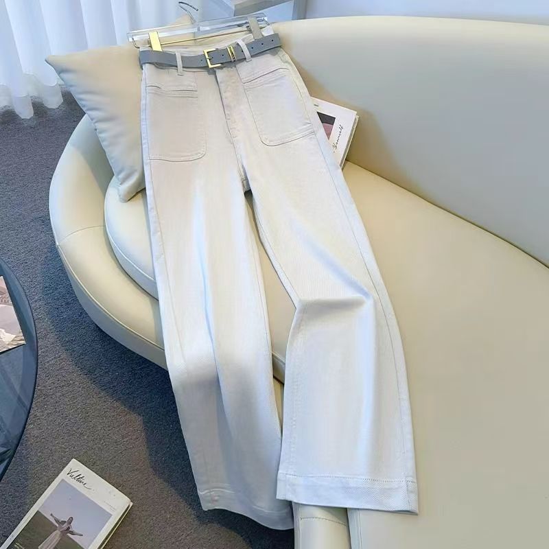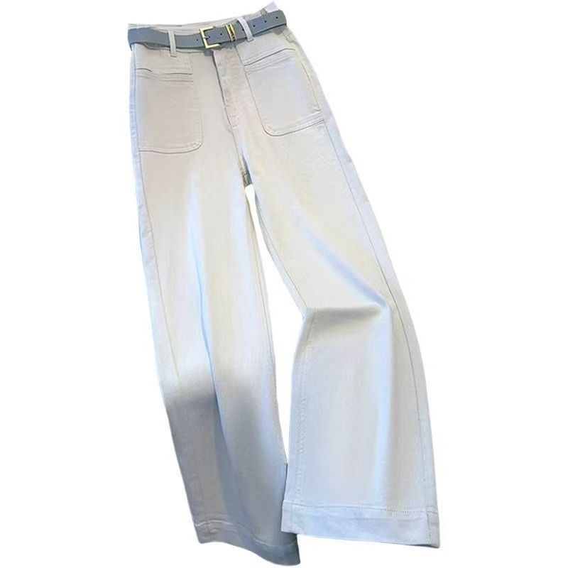 FA42891# 浅灰色牛仔裤女秋季中高腰宽松直筒显瘦阔腿九分小个子灰白色裤子 服裝批發女裝批發服飾貨源