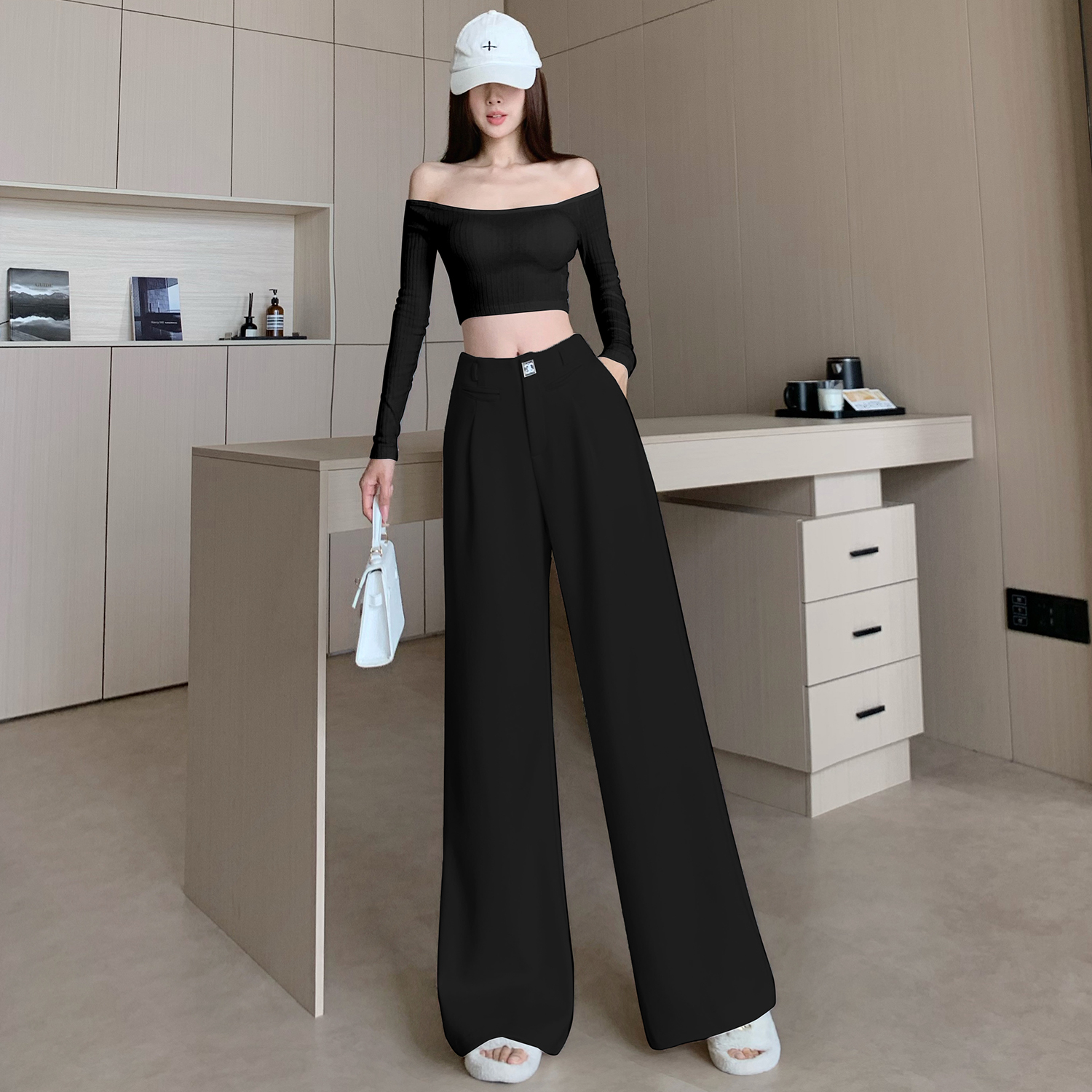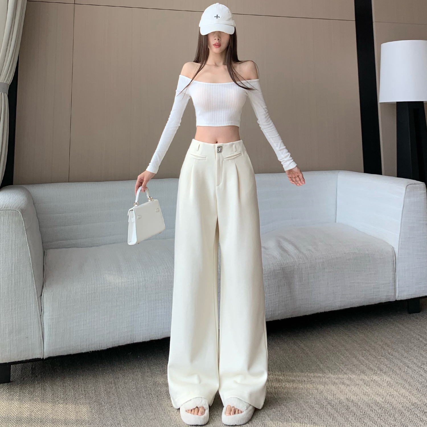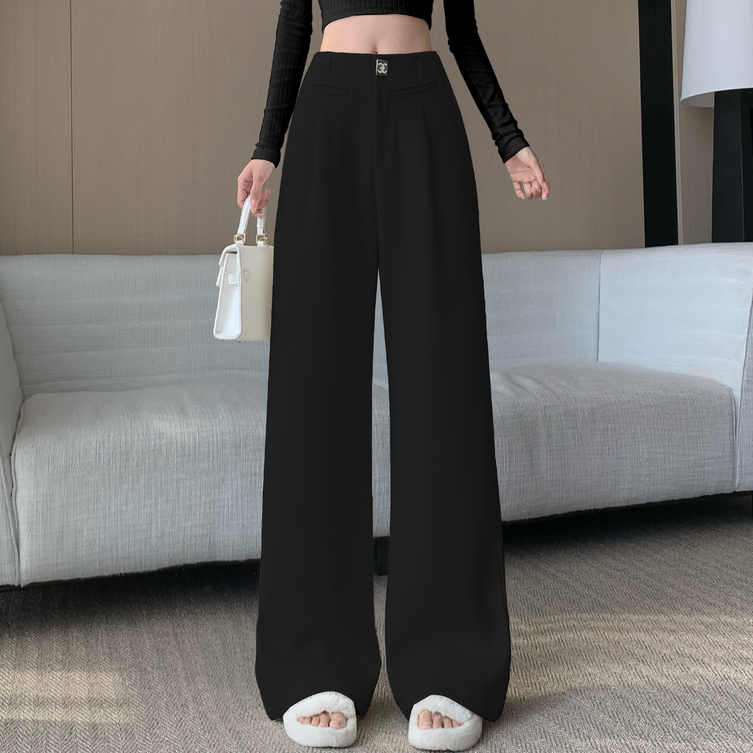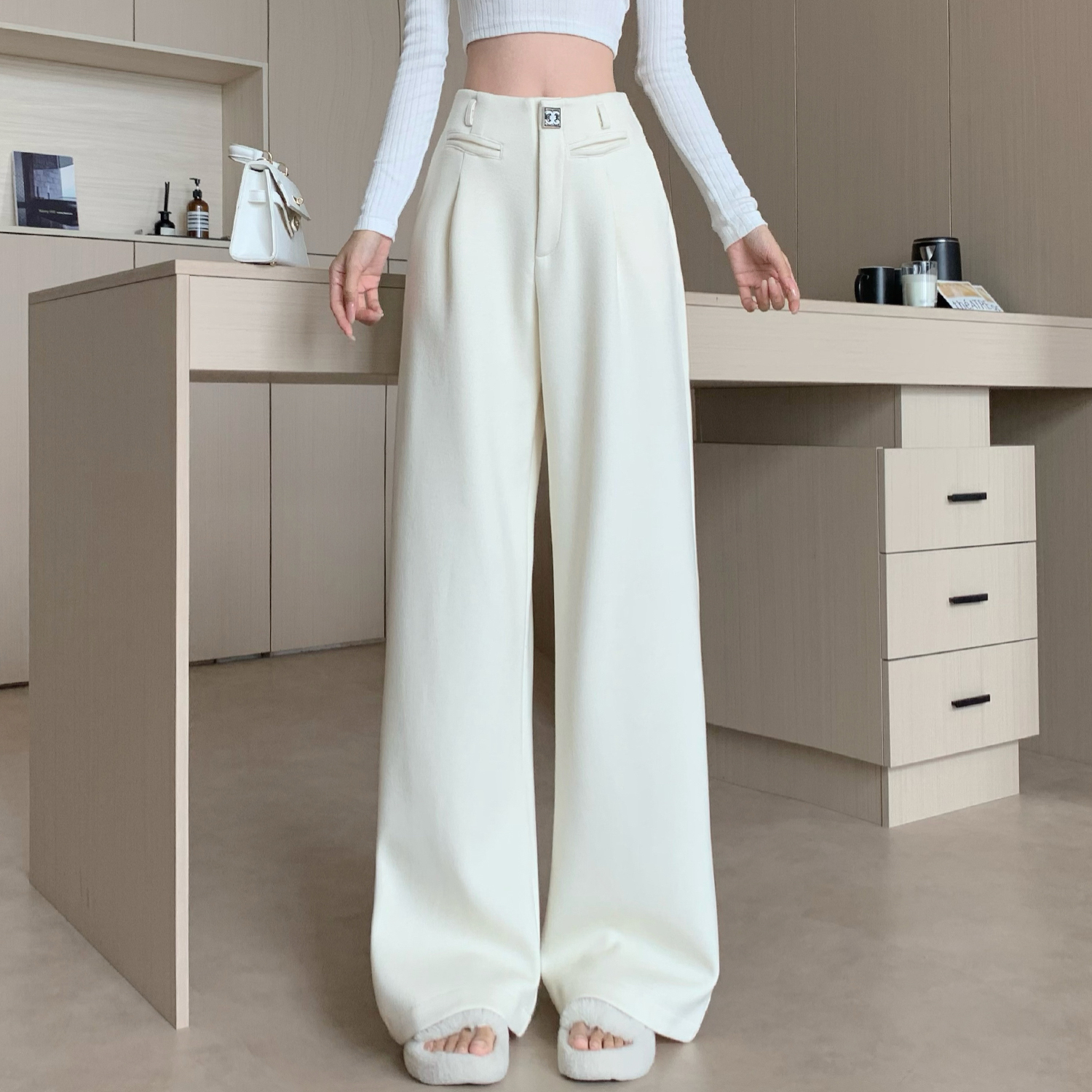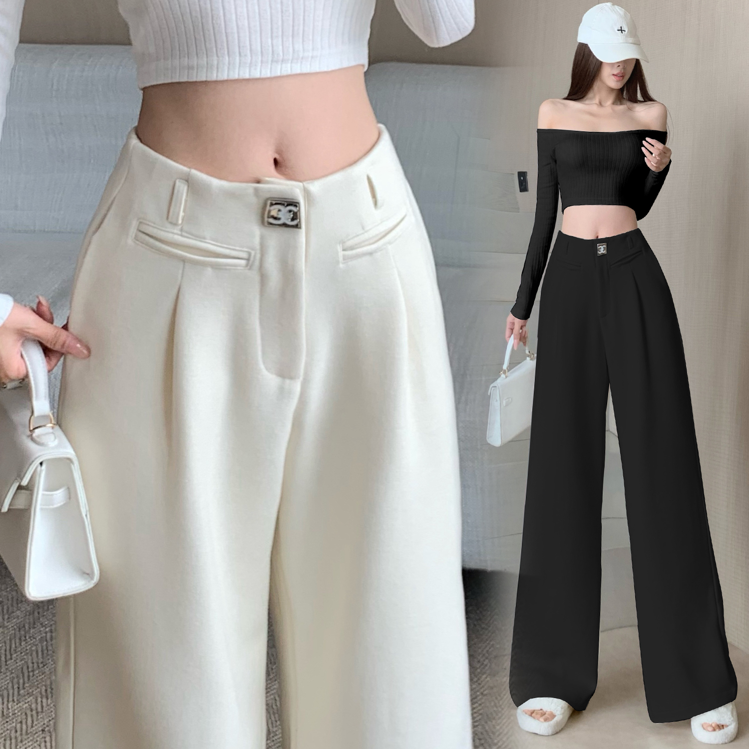FA42894# 羊绒小香风阔腿裤秋冬新款加厚设计感宽松休闲拖地直筒裤 服裝批發女裝批發服飾貨源
