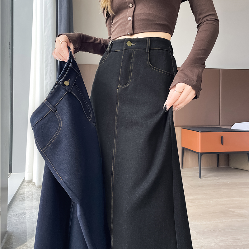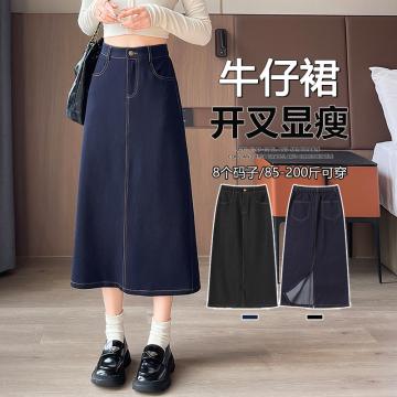 a字半身裙女秋季新款高腰小个子黑色中长款巨好看包臀直筒裙 服裝批發女裝批發服飾貨源