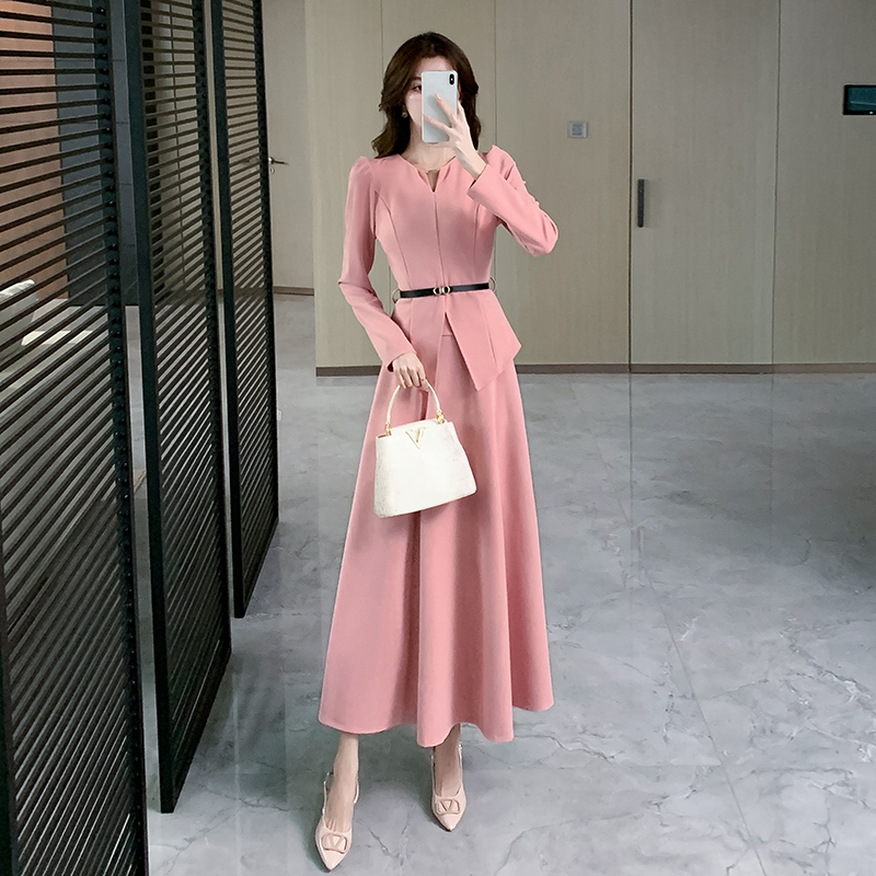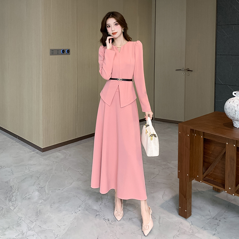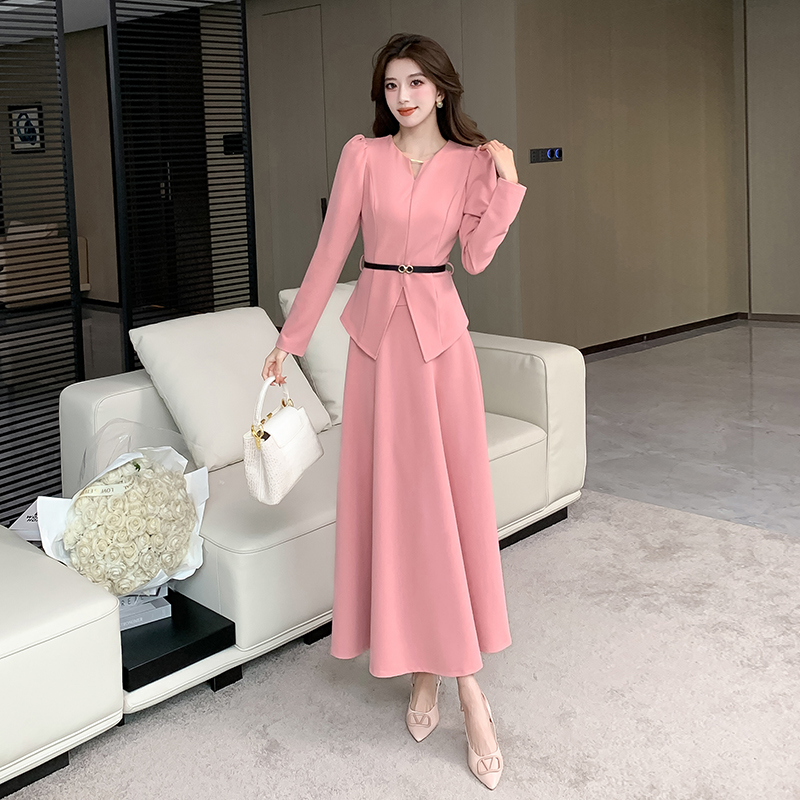 FA42910# 视频秋冬季新款网红收腰上衣显瘦长裙套装两件套 服裝批發女裝批發服飾貨源