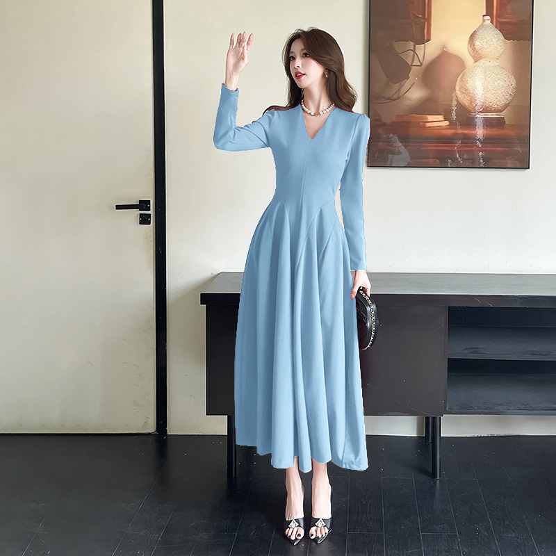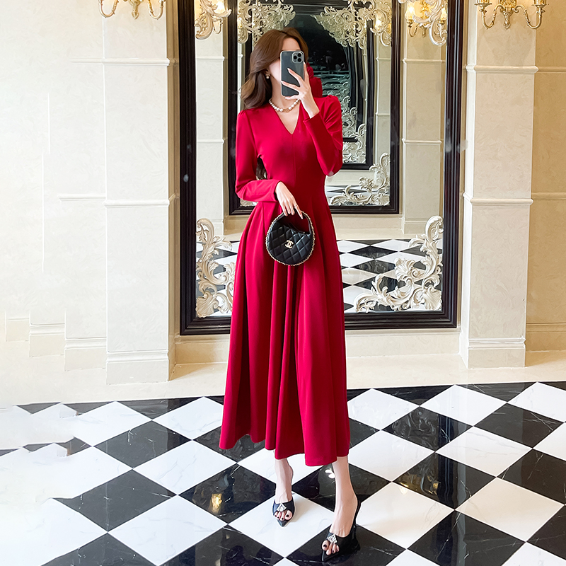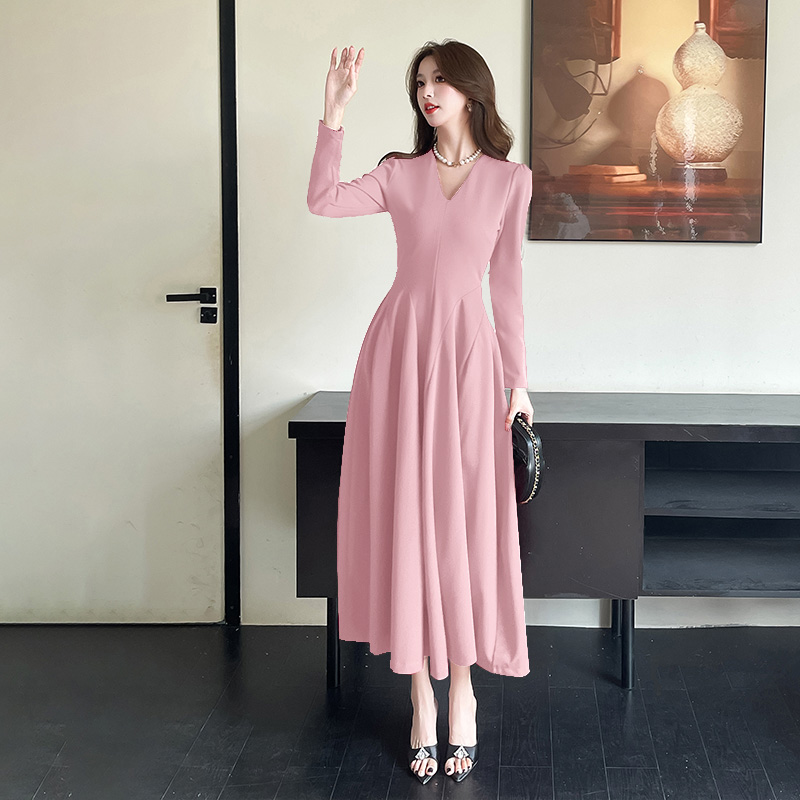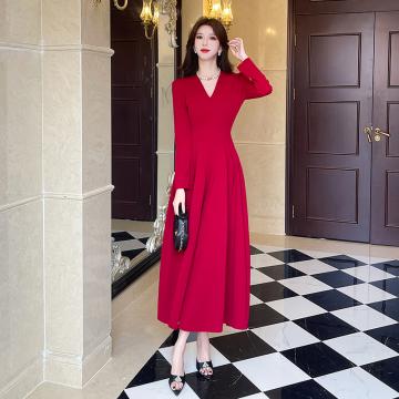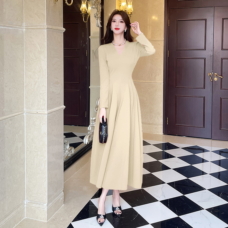 视频秋冬季新款时尚气质网红收腰大摆长裙显瘦连衣裙 服裝批發女裝批發服飾貨源