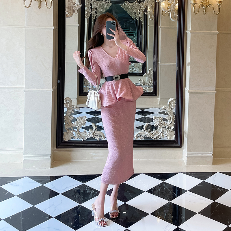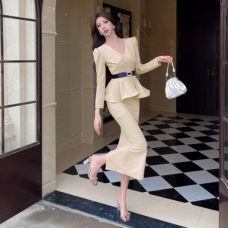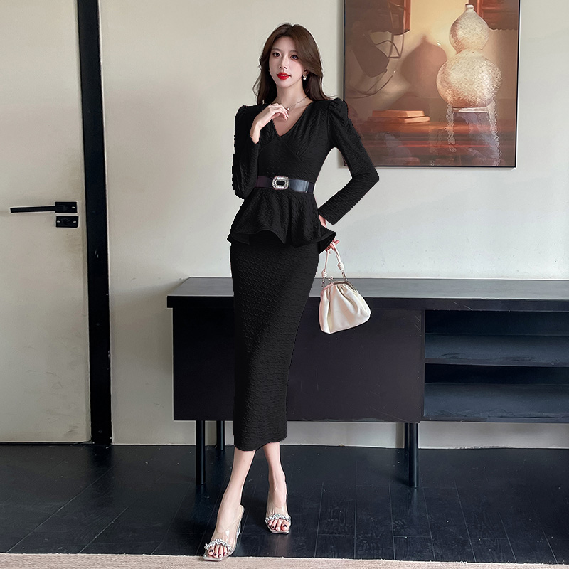 视频秋冬季新款御姐时尚女神名媛气质v领长裙包臀连衣裙 服裝批發女裝批發服飾貨源