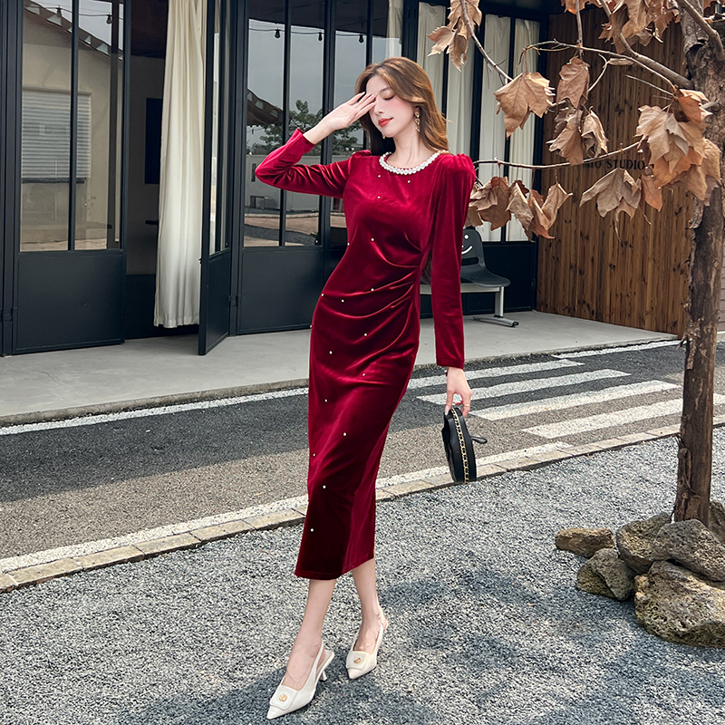 视频秋季新款时尚秋季金丝绒长裙包臀连衣裙 服裝批發女裝批發服飾貨源