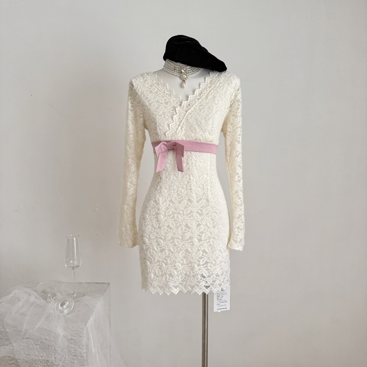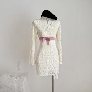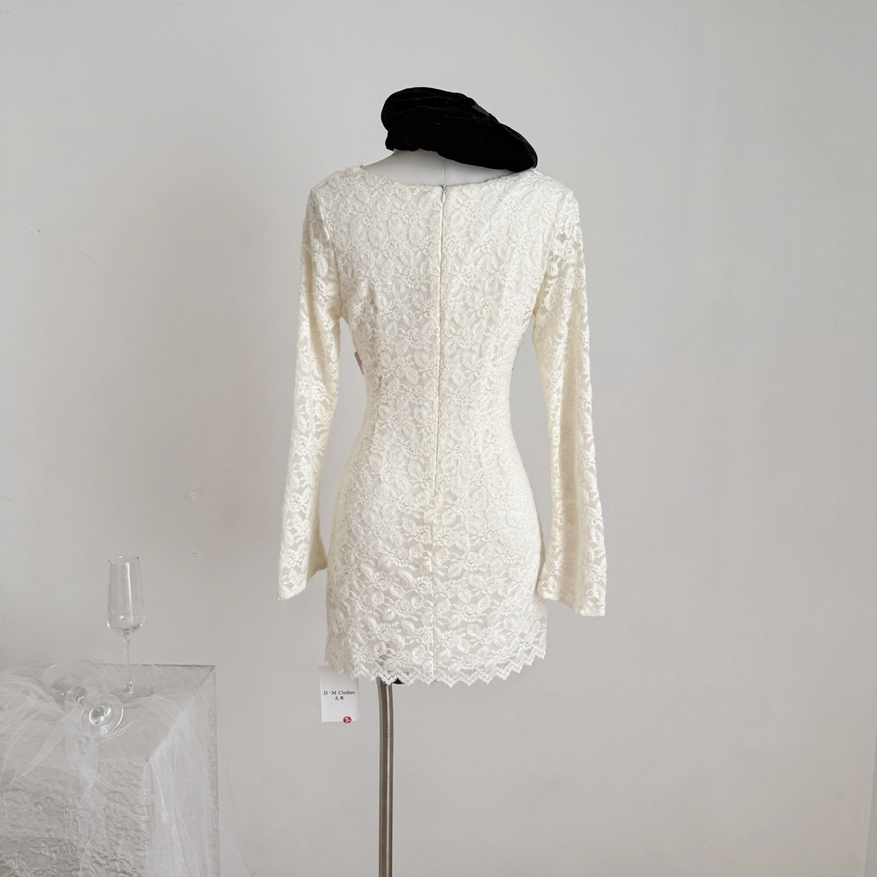 FA43758# 纷纷秋叙毛绒蕾丝修身裙 服裝批發女裝批發服飾貨源