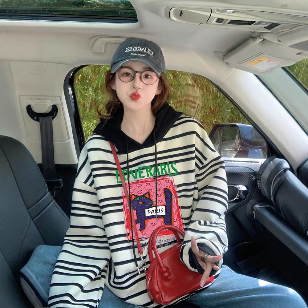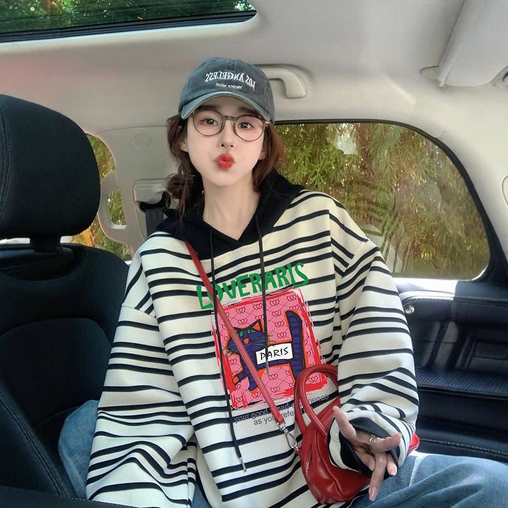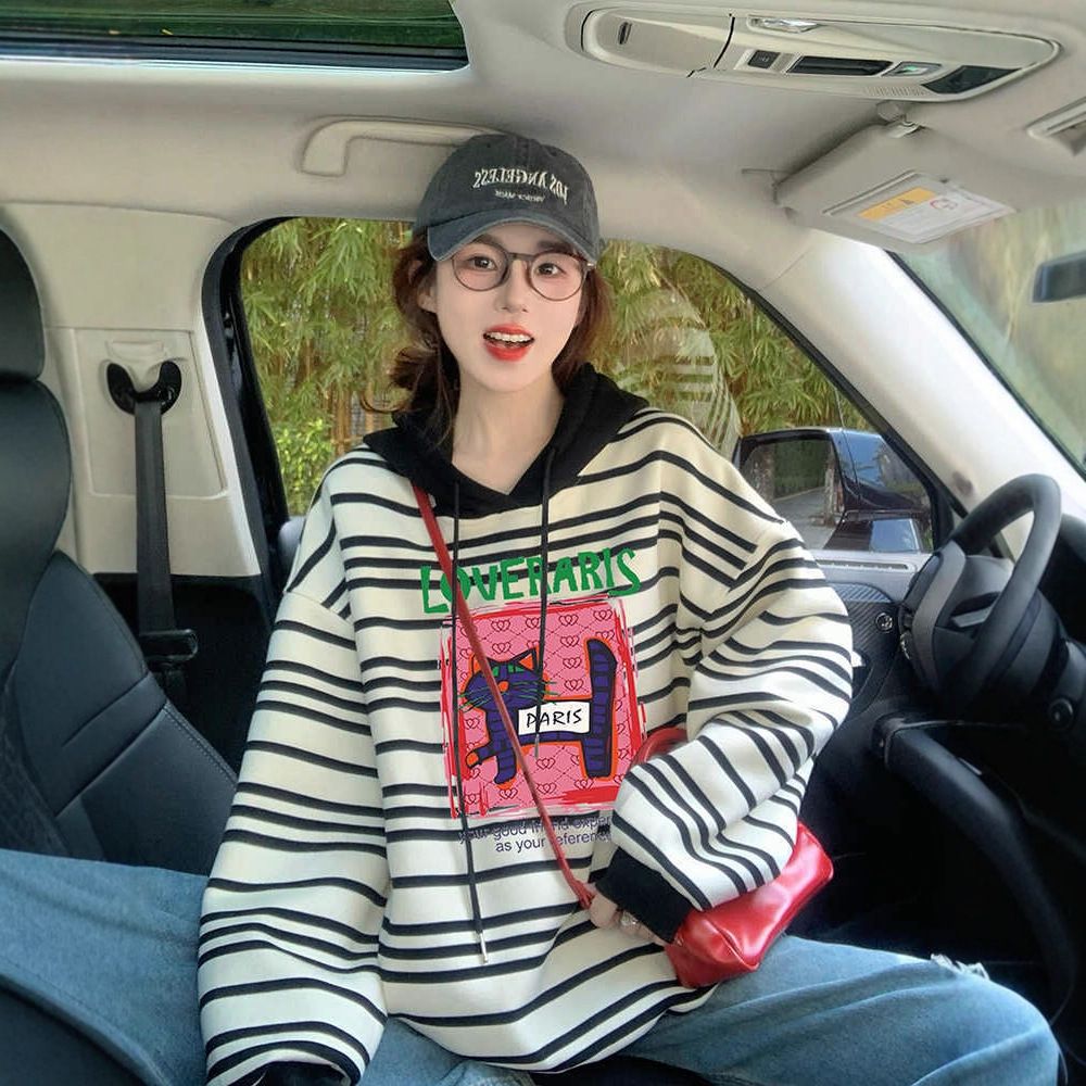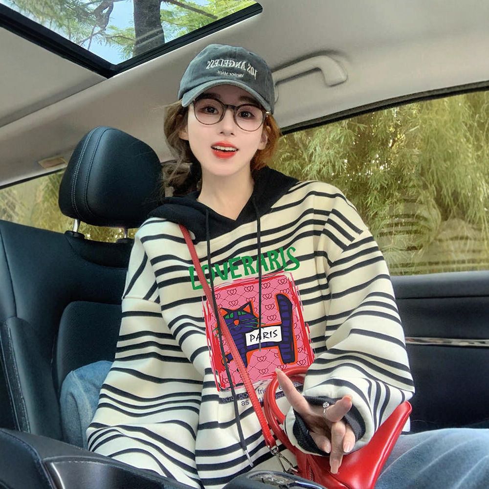FA43826# 棉复合后包领秋季撞色条纹薄款连帽卫衣女 服裝批發女裝批發服飾貨源