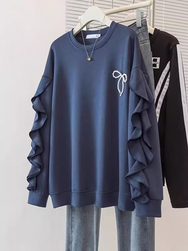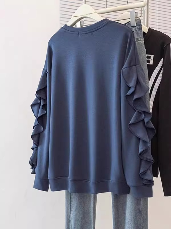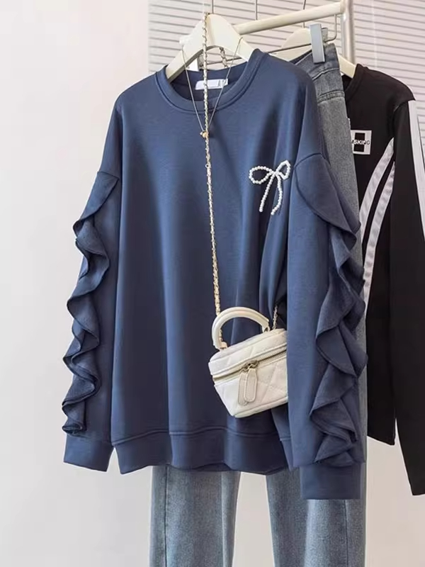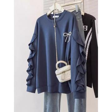 FA43836# 曼巴棉设计感正肩圆领卫衣秋季慵懒风宽松显瘦时尚洋气上衣 服裝批發女裝批發服飾貨源