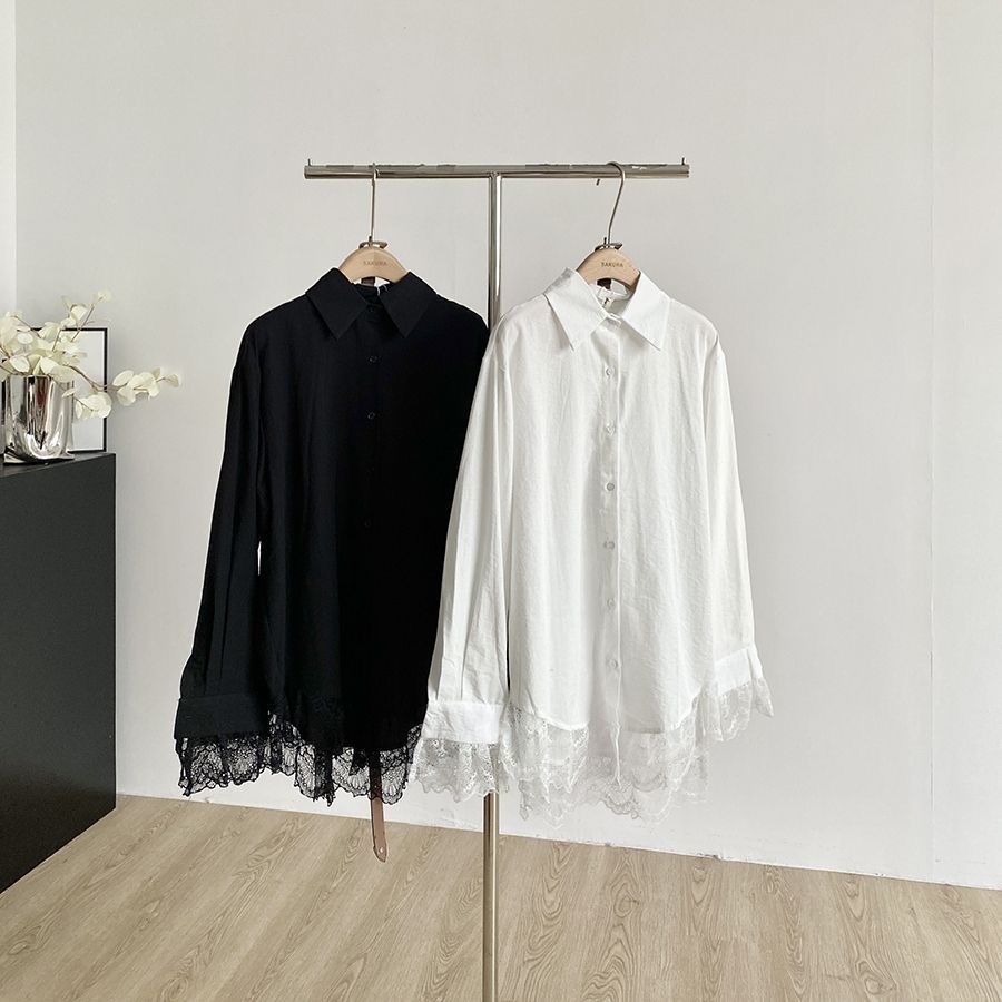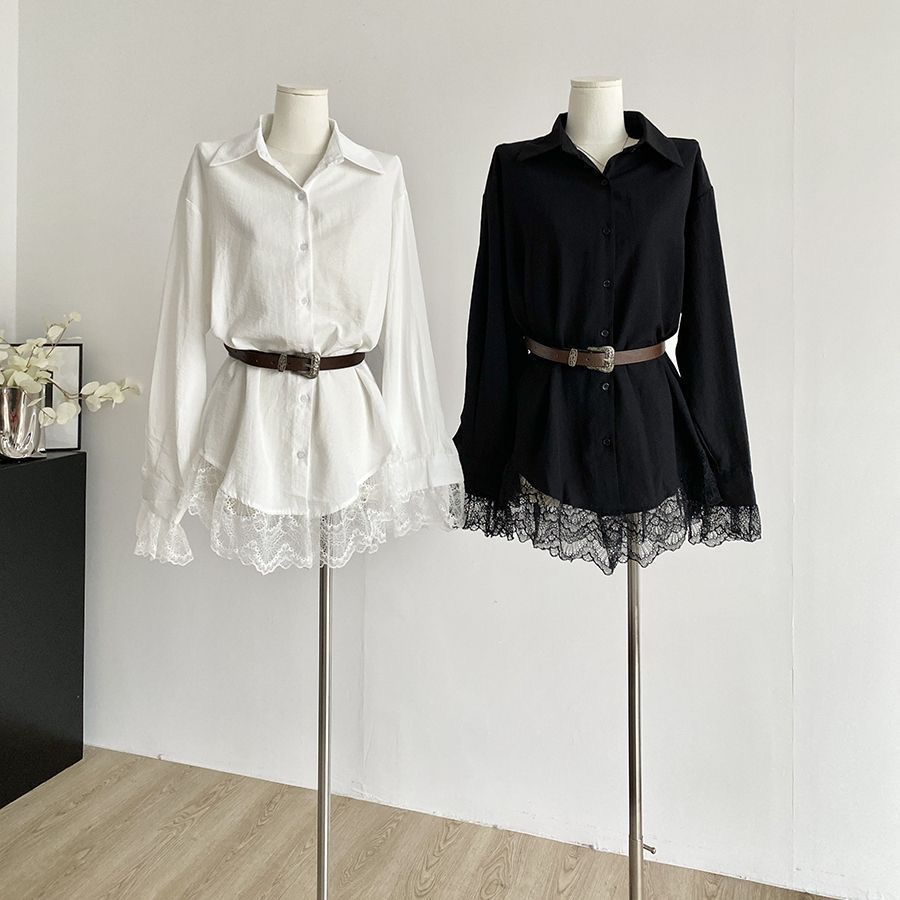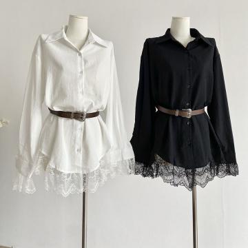 FA43861# 赵露思同款!不规则翻领连衣裙腰带辣妹白色长袖衬衫衬衣天内发货 服裝批發女裝批發服飾貨源