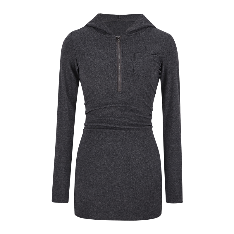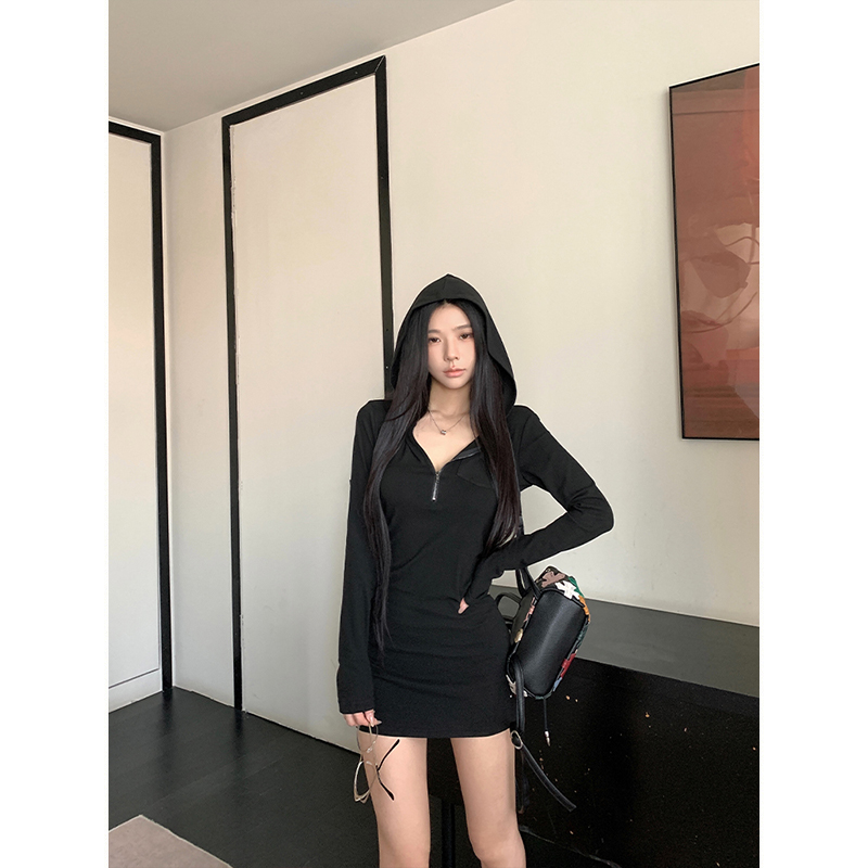 FA43943# .连帽长袖连衣裙女秋季收腰显瘦包臀短裙 服裝批發女裝批發服飾貨源