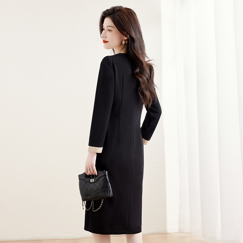 FA44040# 时尚拼接蝴蝶结设计感连衣裙女新款气质显瘦中长款开叉裙子 服裝批發女裝批發服飾貨源