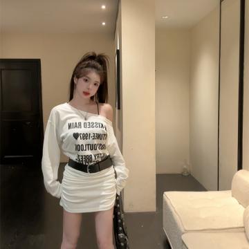 Home > 夜店裙、长袖连衣裙 > FA44089# 早秋新款字母印花斜领长袖薄款修身休闲连衣裙配腰带 服裝批發女裝批發服飾貨源