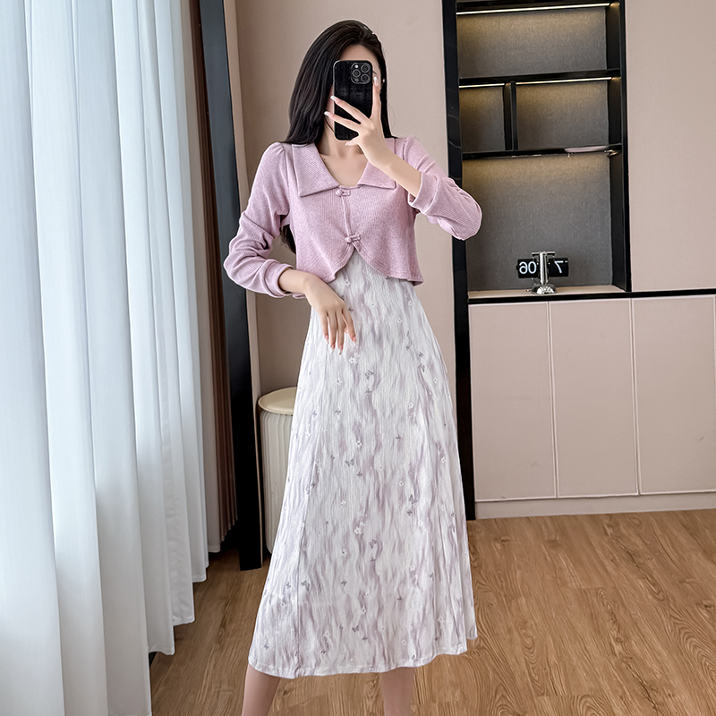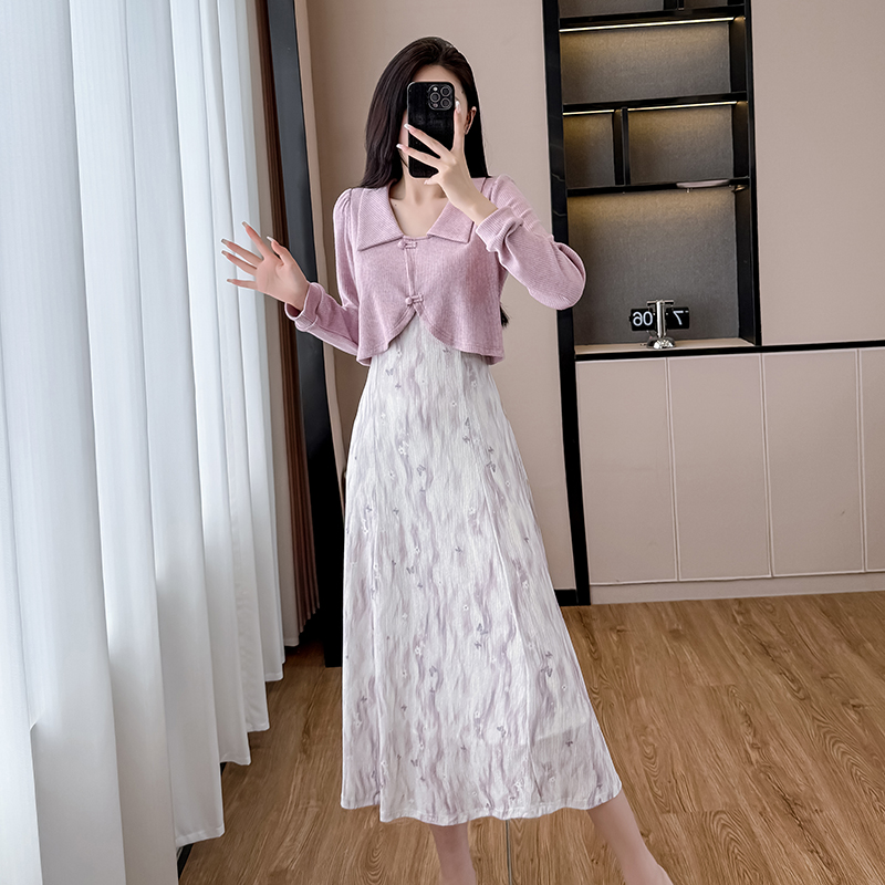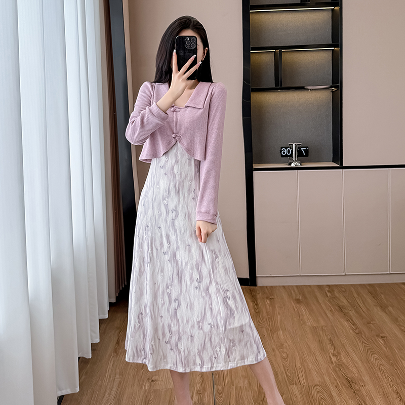 Home > 夜店裙、长袖连衣裙 > FA44108# 紫色假两件碎花长袖连衣裙女春秋新款裙子独特气质长裙 服裝批發女裝批發服飾貨源