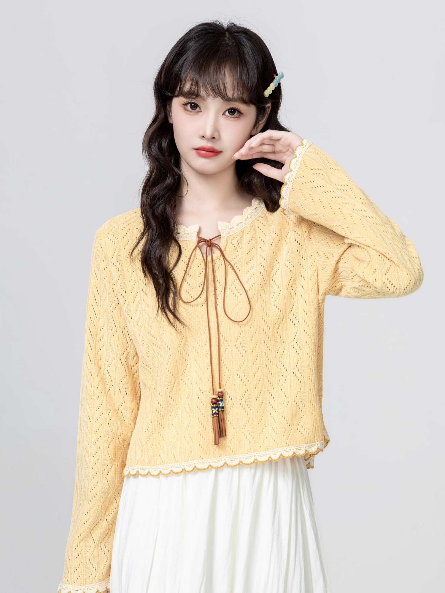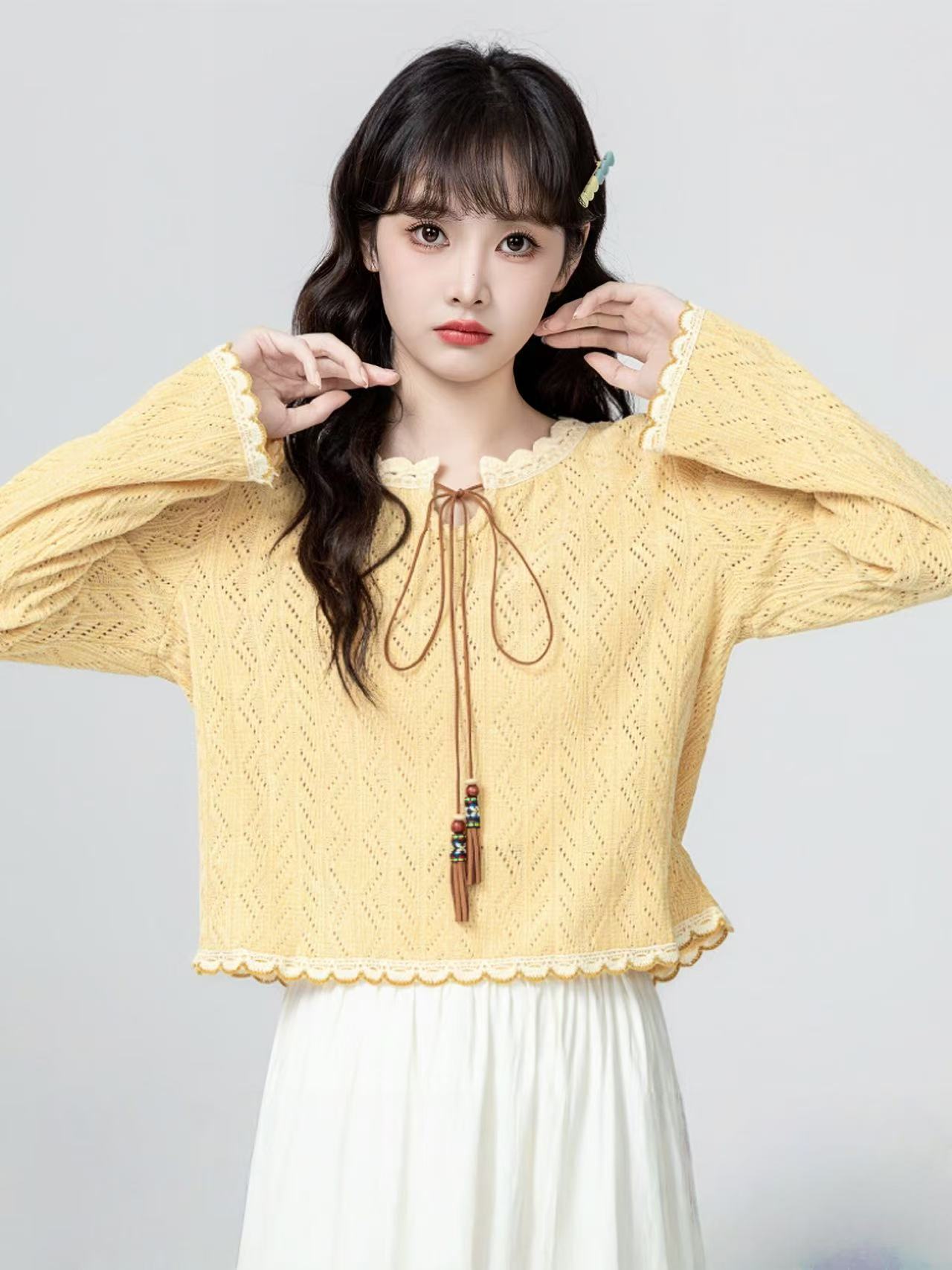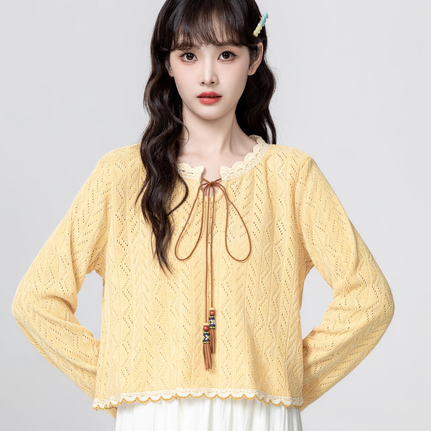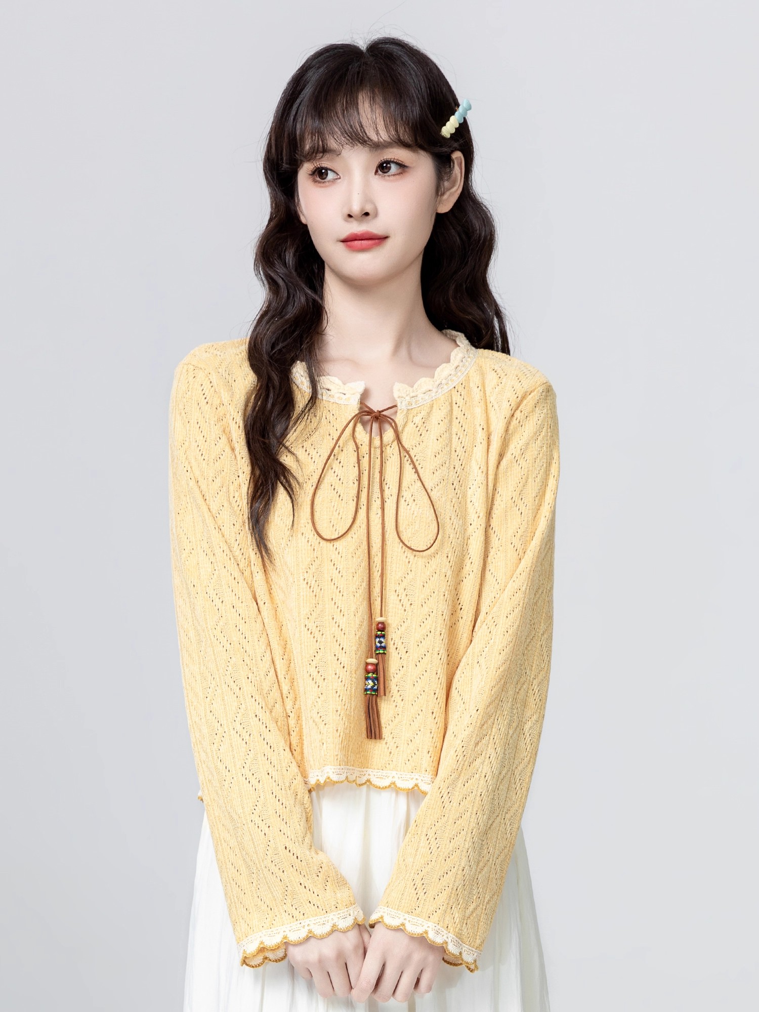 FA44164# 韩版温柔气质蕾丝拼接针织衫长袖秋季新款圆领时尚大码上衣 服裝批發女裝批發服飾貨源