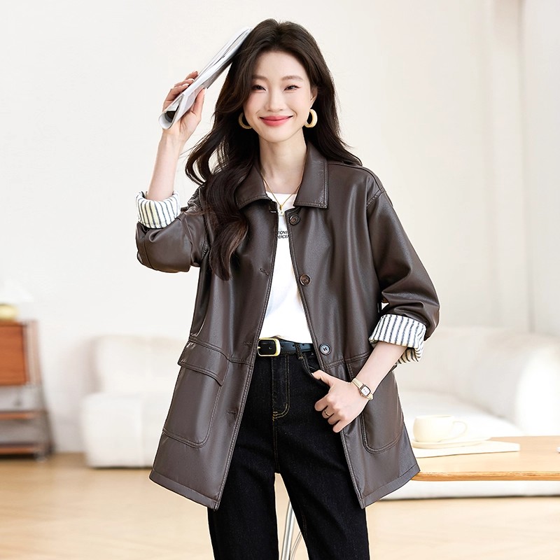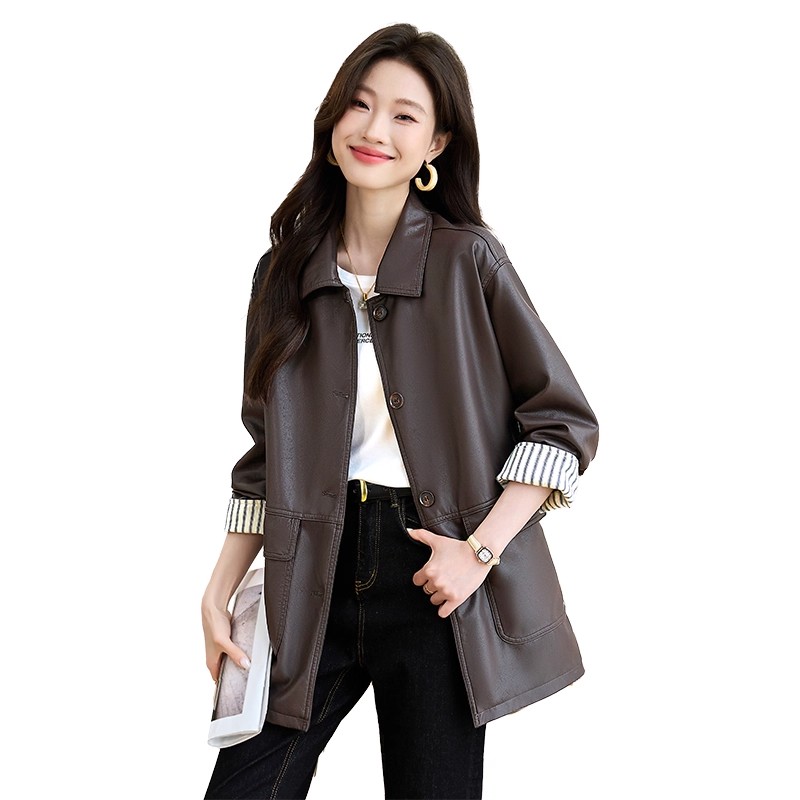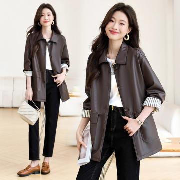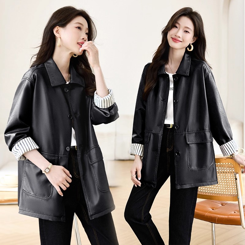 FA44225# 秋冬季新款设计感拼接黑色PU皮外套女巴恩风美式宽松休闲夹克上衣 服裝批發女裝批發服飾貨源
