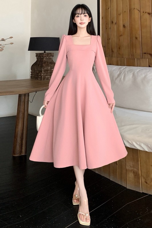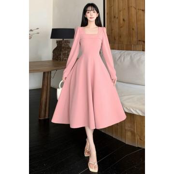 FA44242# 法式复古温柔风连衣裙春秋新款大码高级感显瘦气质订婚礼服长裙子 服裝批發女裝批發服飾貨源