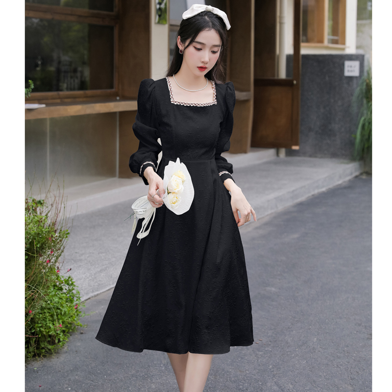 FA44249# 大码法式复古赫本风高档提花连衣裙女夏季收腰显瘦气质a字长裙子. 服裝批發女裝批發服飾貨源