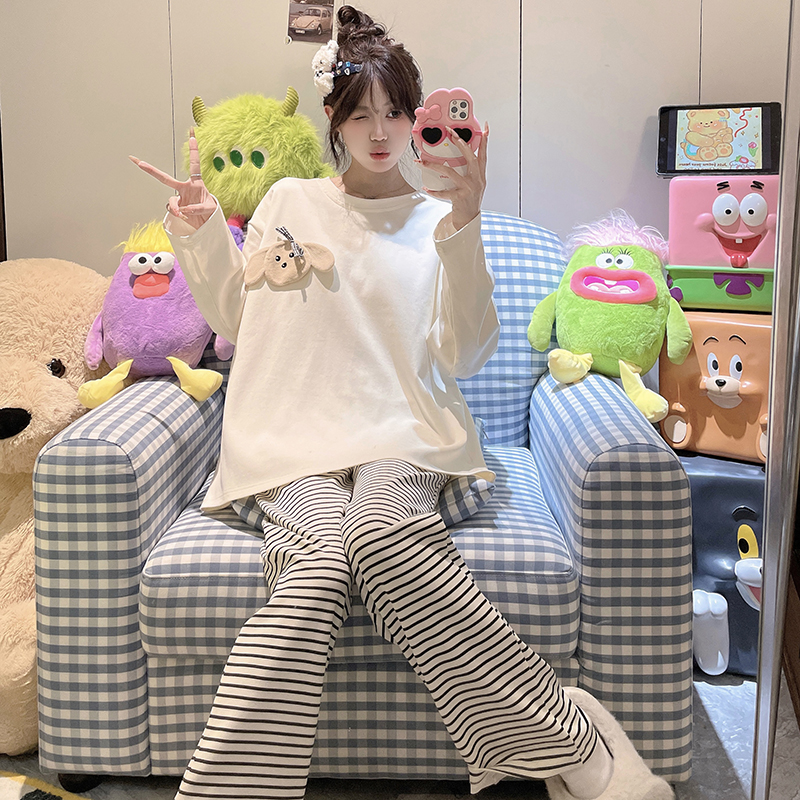 睡衣女春秋款新款条纹简约风秋冬季可外穿长袖长裤家居服套装 服裝批發女裝批發服飾貨源
