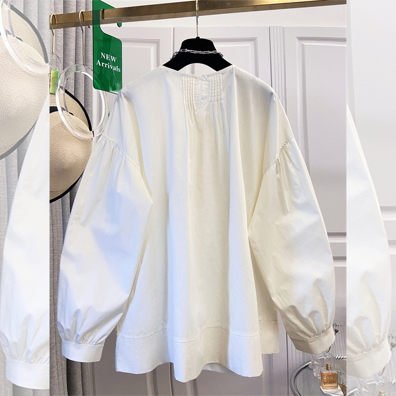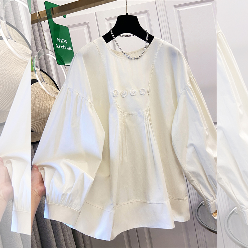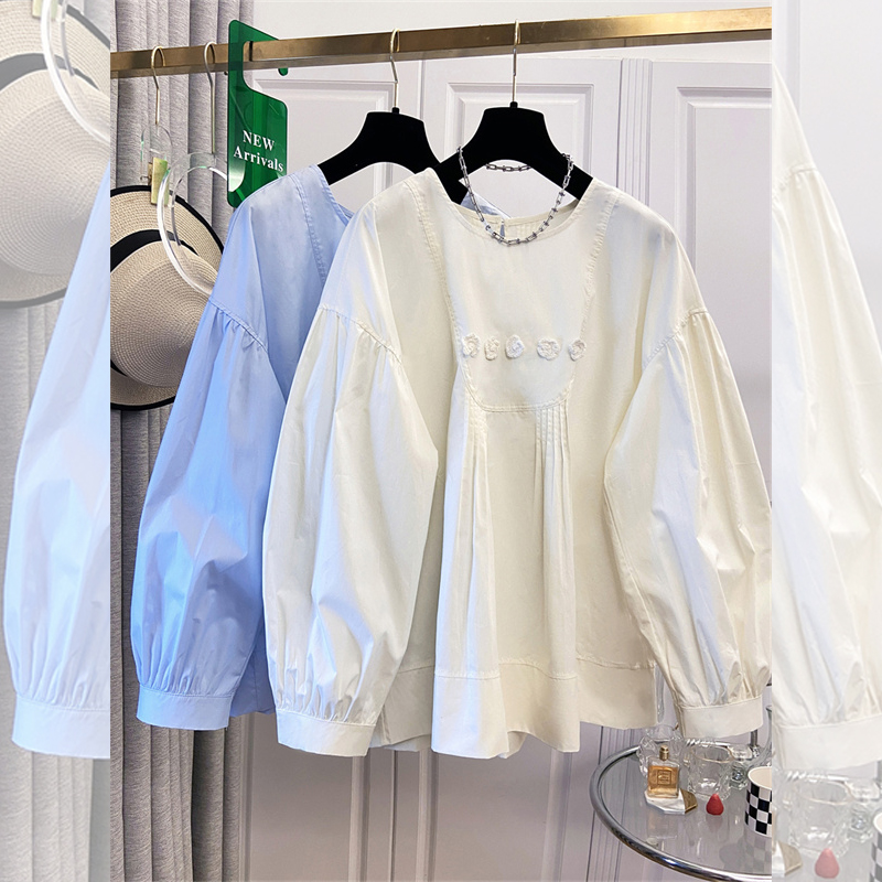 Home > 长袖雪纺衫、衬衫、上衣 > FA44310# 韩系高级感独特巨好看的圆领长袖衬衫女早秋季娃娃衫宽松 服裝批發女裝批發服飾貨源